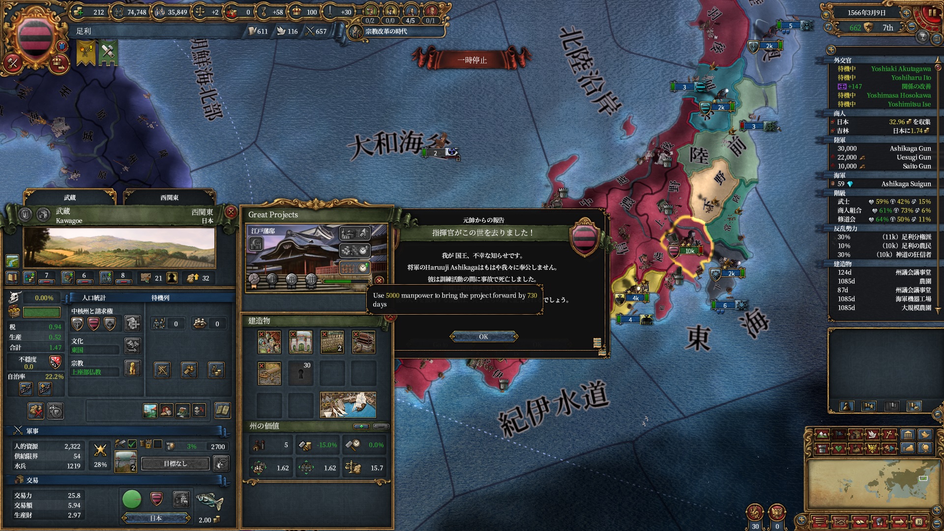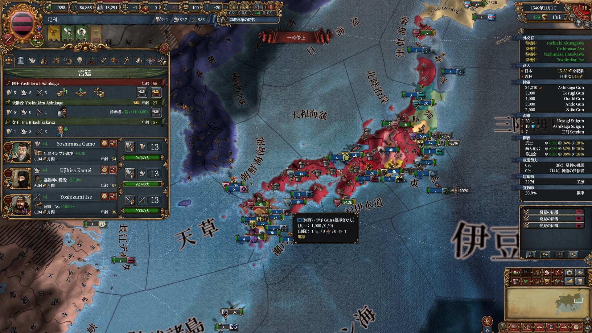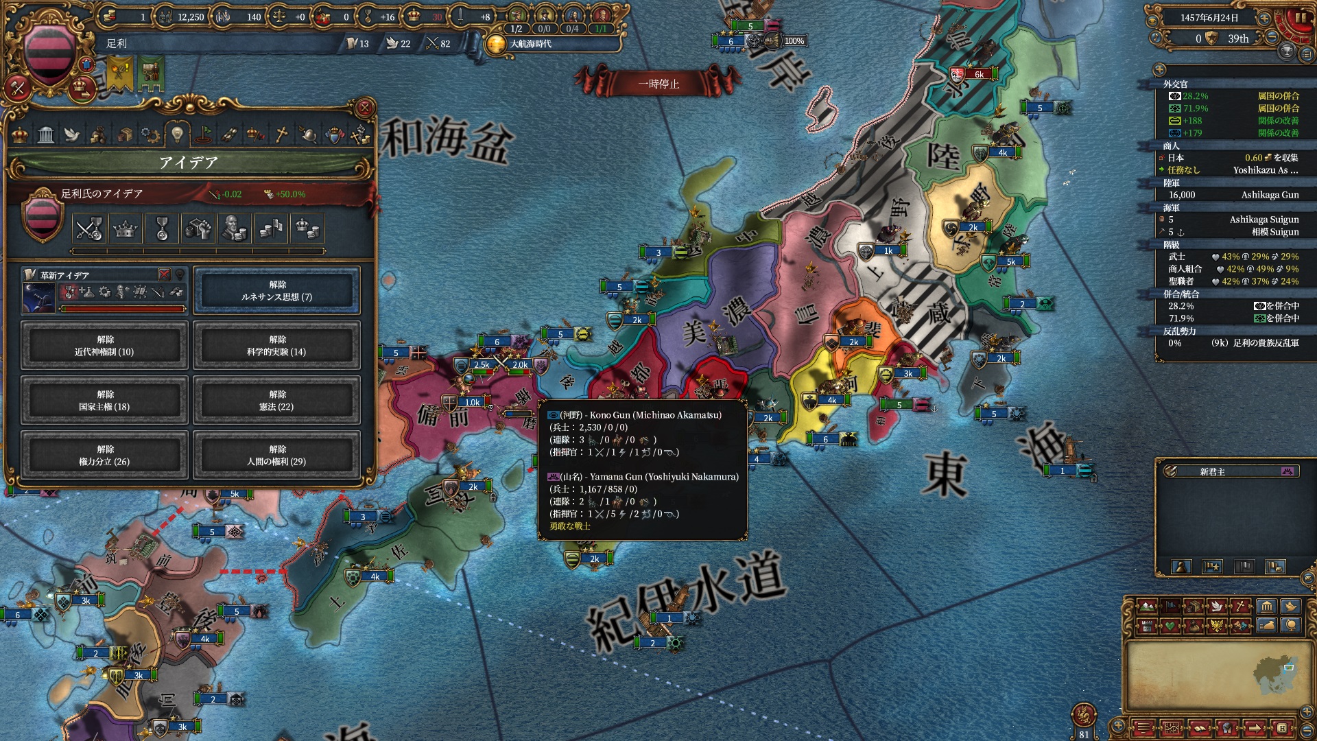 ここらで足利のNI「奉行衆と奉公衆(顧問コスト-15%)」が得られるようになりました。