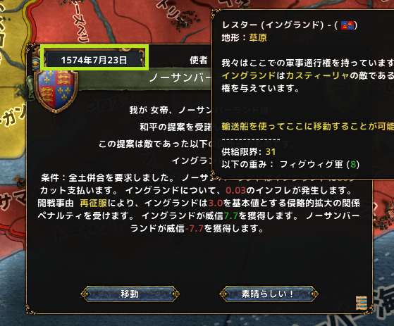 残りの戦勝点でキリスト教国の中核地を返還させ、できる限り要塞を手放させるようにした。