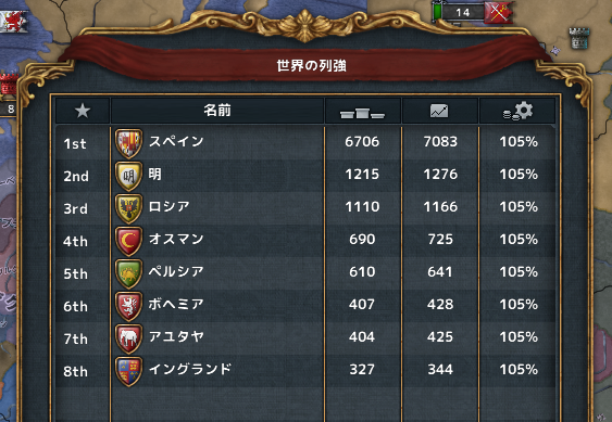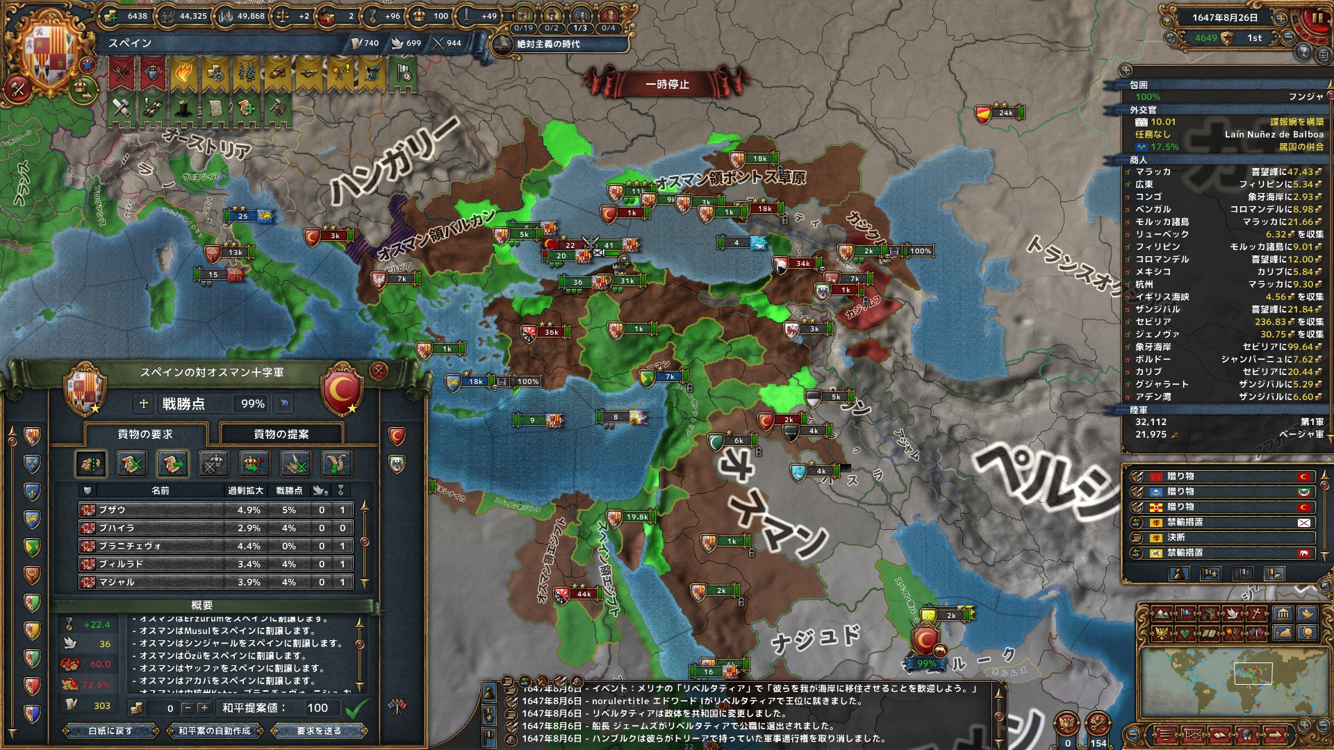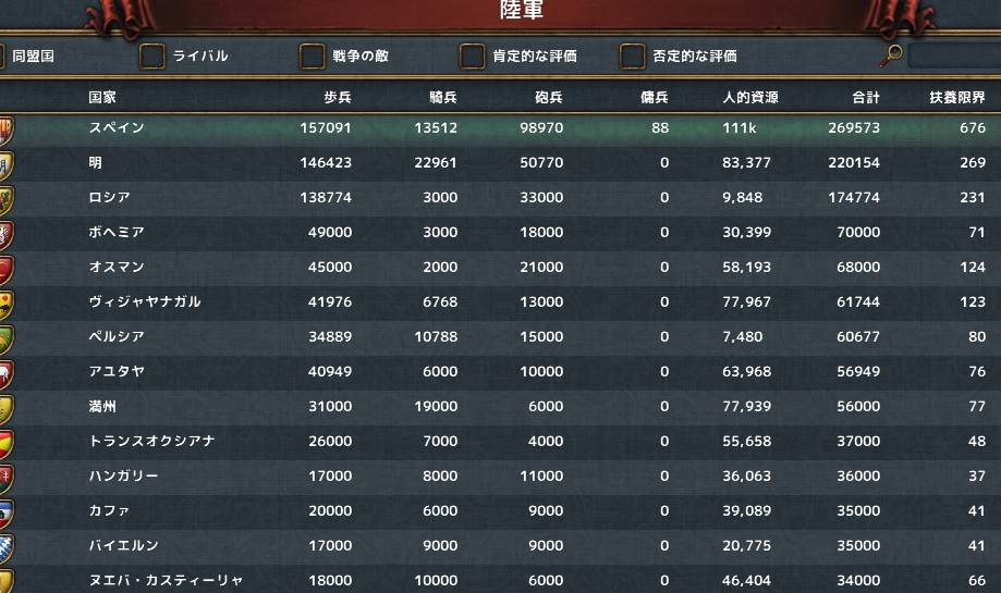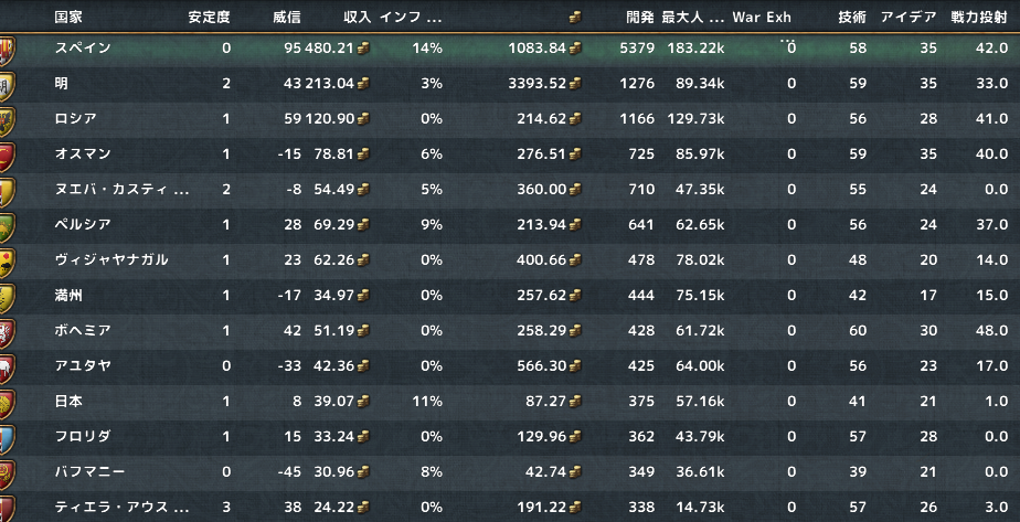 まだ攻撃したことのない大国は明、ロシアのみで、単独でスペインに匹敵する力を持つ国は存在しない。