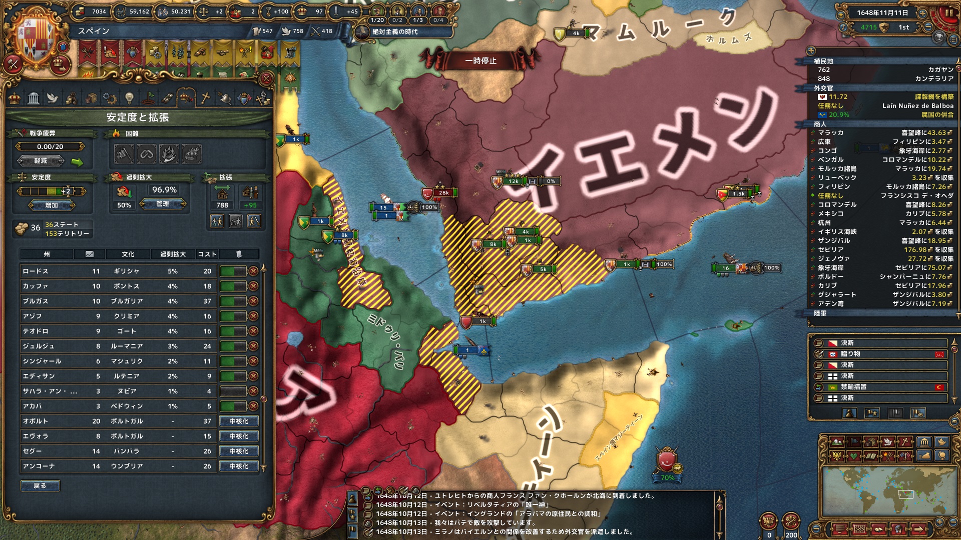 11月 イエメンと停戦。ミドゥリ・バリに4州を返還させる。イエメンや同盟参戦諸国からスペイン本国も3州を獲得。