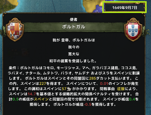 9月 ポルトガルとの半年間の戦争で、海外州10州を獲得。