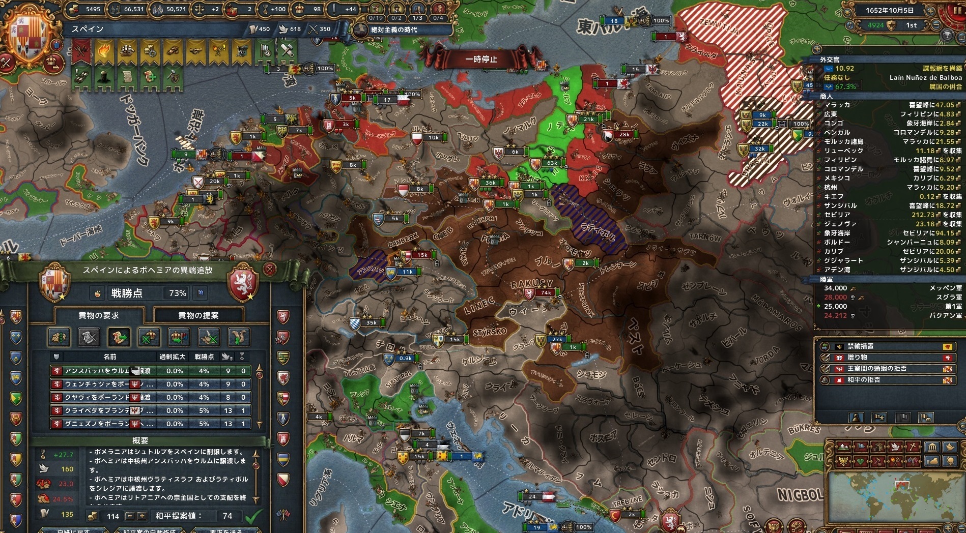 10月 ボヘミアと停戦。先に、同盟参戦のブルゴーニュ、ミラノと白紙和平した後物量で蹂躙した。