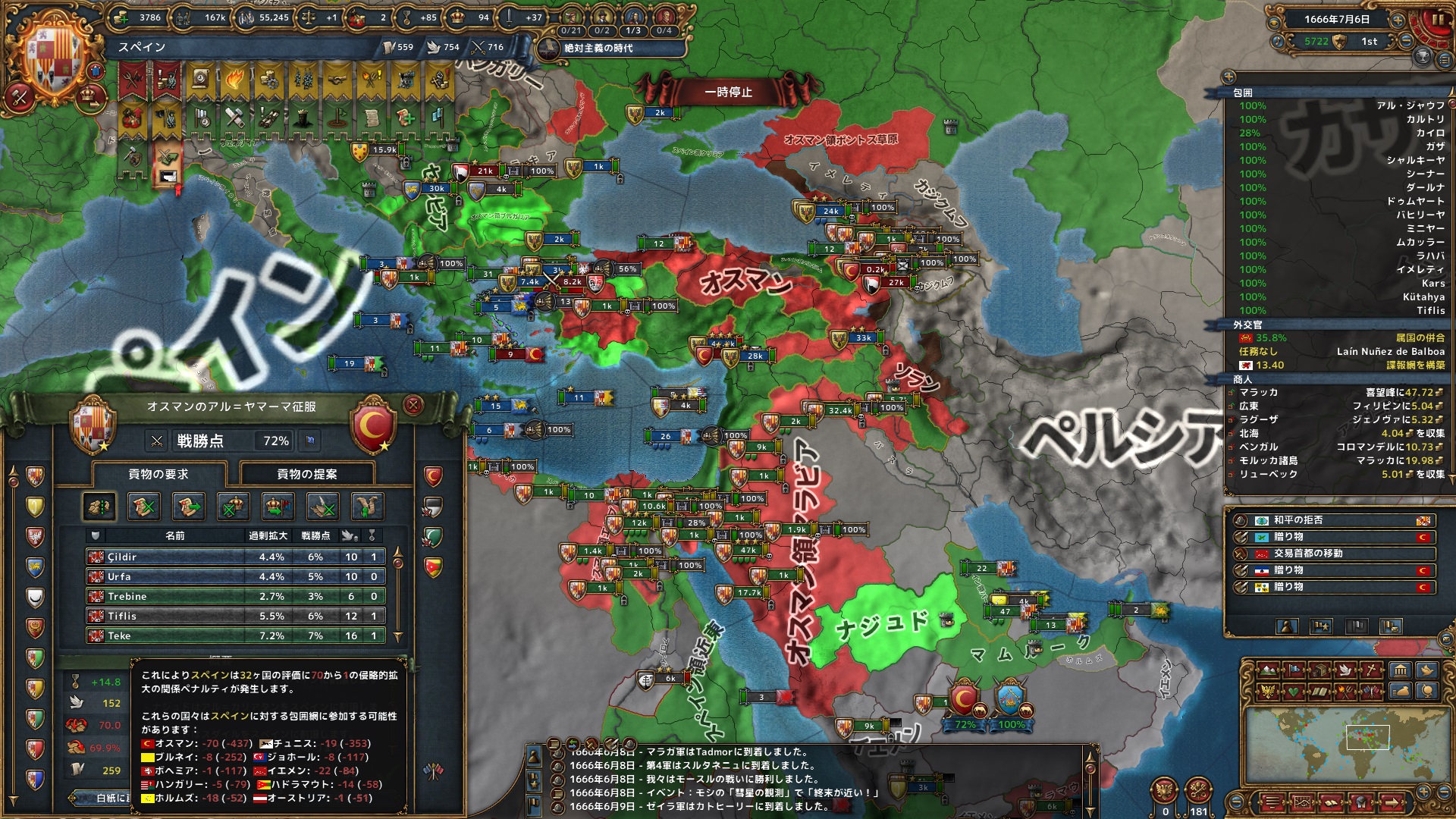 ヨーロッパでも、各地で停戦更新がてら武力恫喝をしかけ続けており、塵も積もればで拡張の一助となっている。