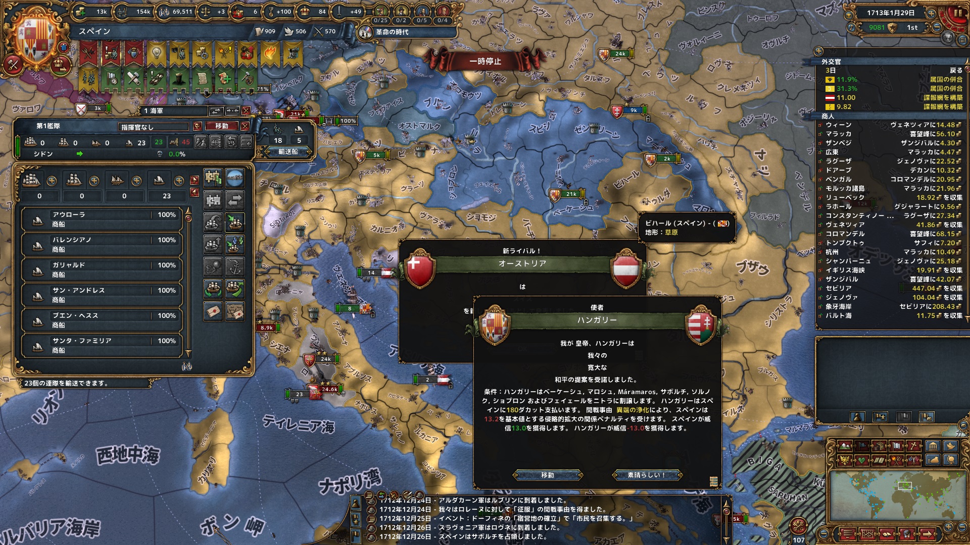 11月 都合のいいことに革命の時代の能力で無制限征服を獲得。中核化や割譲の際の州の距離の制限がなくなる。
