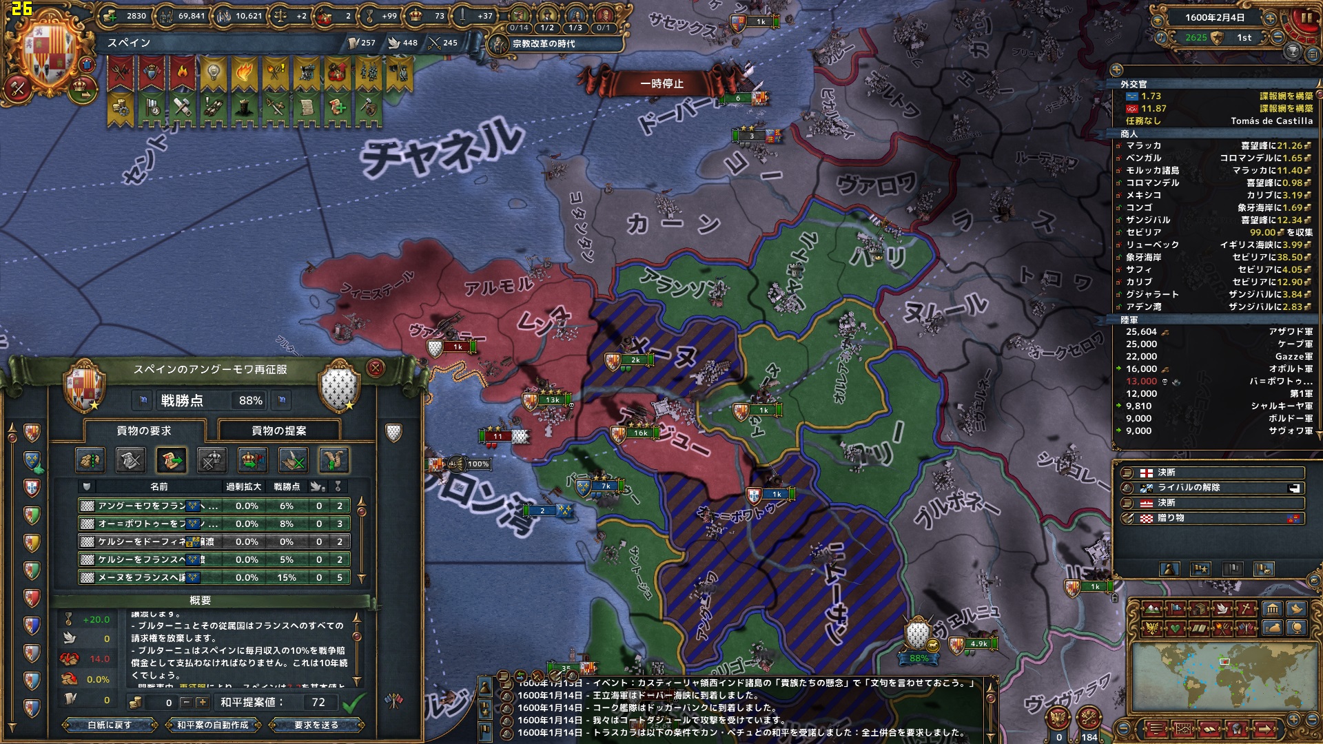 属国は入れ替わり、フランス、フィンランド、カラマン、それに同君下位にポルトガルとなった。外交枠は限界を超過している。