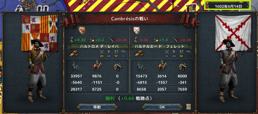 こうなると、もともと物量で差がついているうえに制海権を取って好きなところに軍を投入できるスペインの優位は揺るがない。