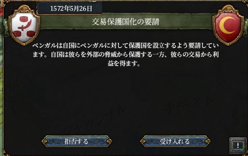 オスマンに対しての交易保護の要請が通るようになっていますので、AIベンガルはしばらくすると保護を要請するでしょう。