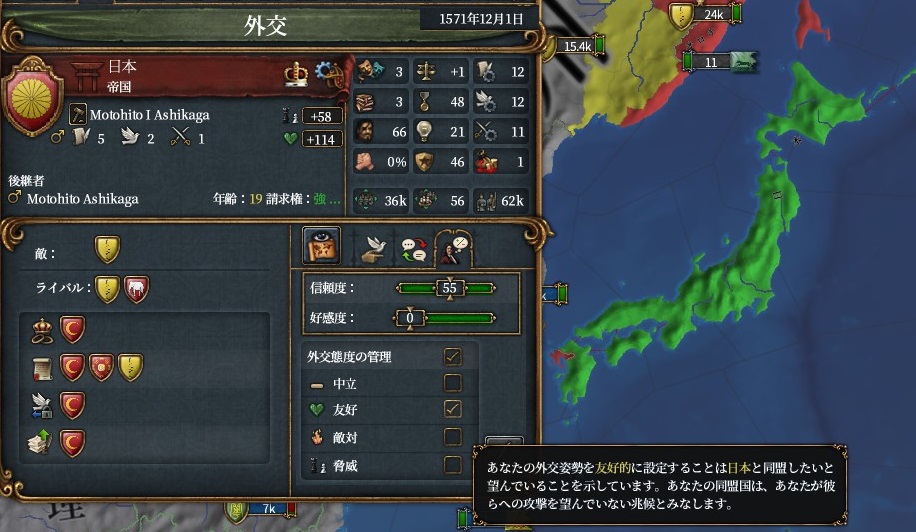 要はプレイヤー(保護受諾側)がai(保護要請側)の軍事技術と陸軍数で上回り、プレイヤーへの態度が脅威であればいいわけです。