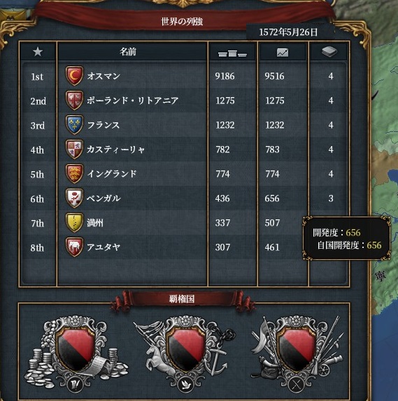なんと総開発は3800以上ありました。非戦でこれだけ属国化できることを考えれば強すぎます。