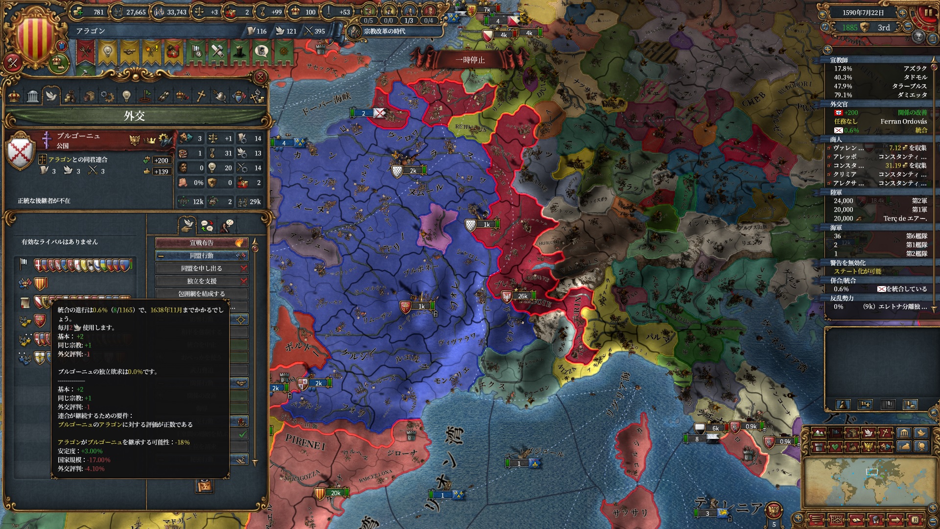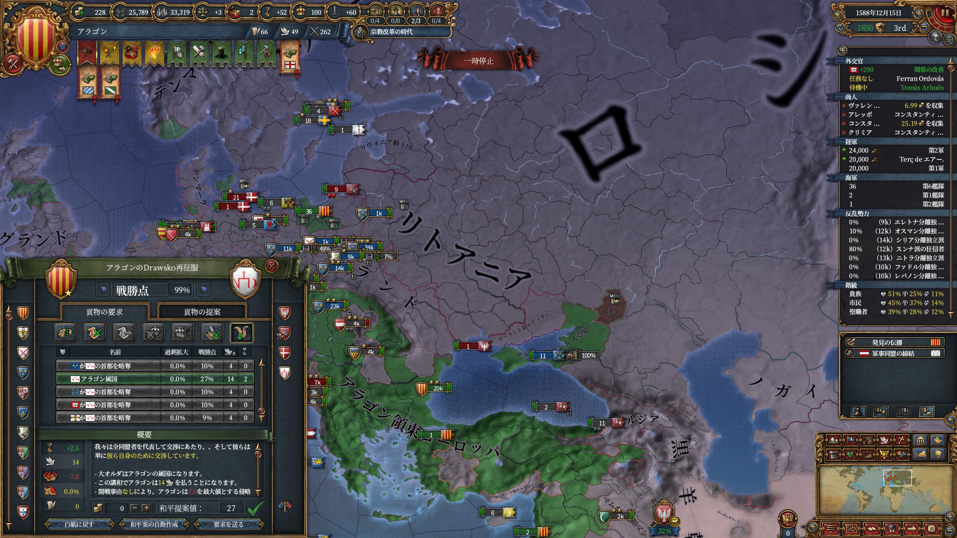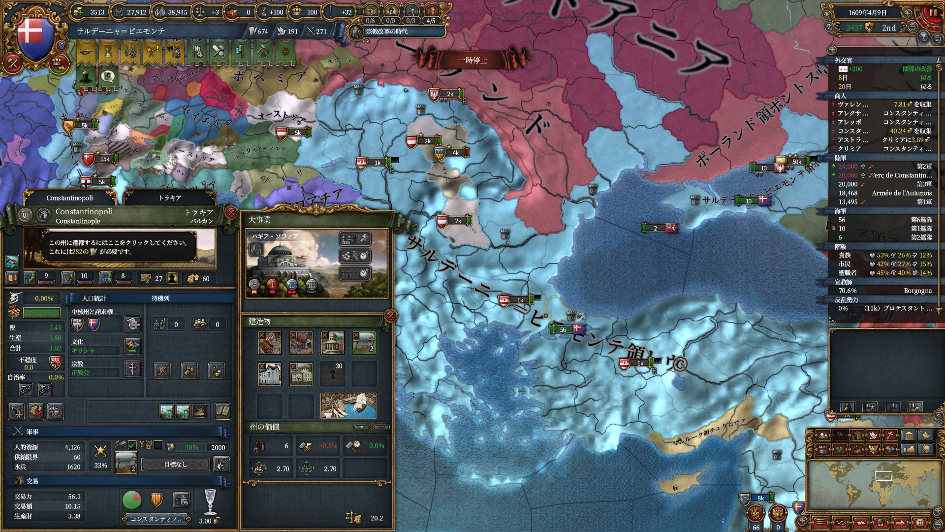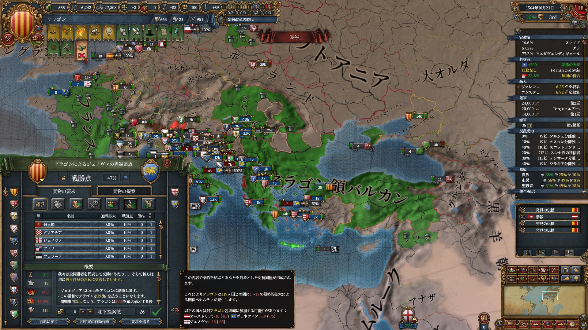 なおNIはすこぶる強力でAE-10%と関係の改善+25%は正教会の聖ニコラオスのイコンと併せてかなりの州を奪え、