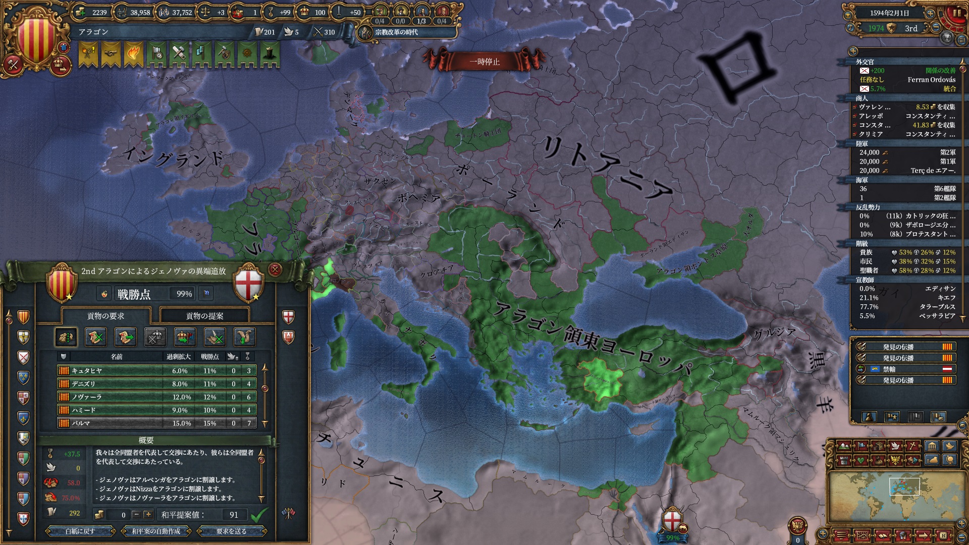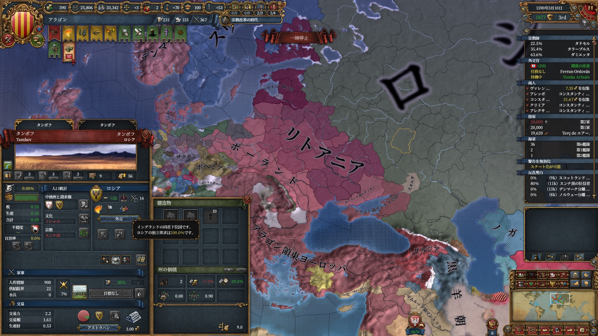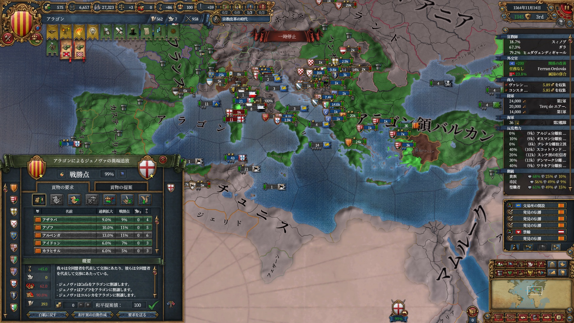 なおNIはすこぶる強力でAE-10%と関係の改善+25%は正教会の聖ニコラオスのイコンと併せてかなりの州を奪え、