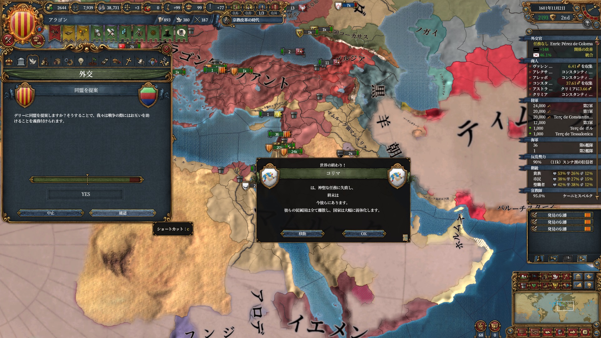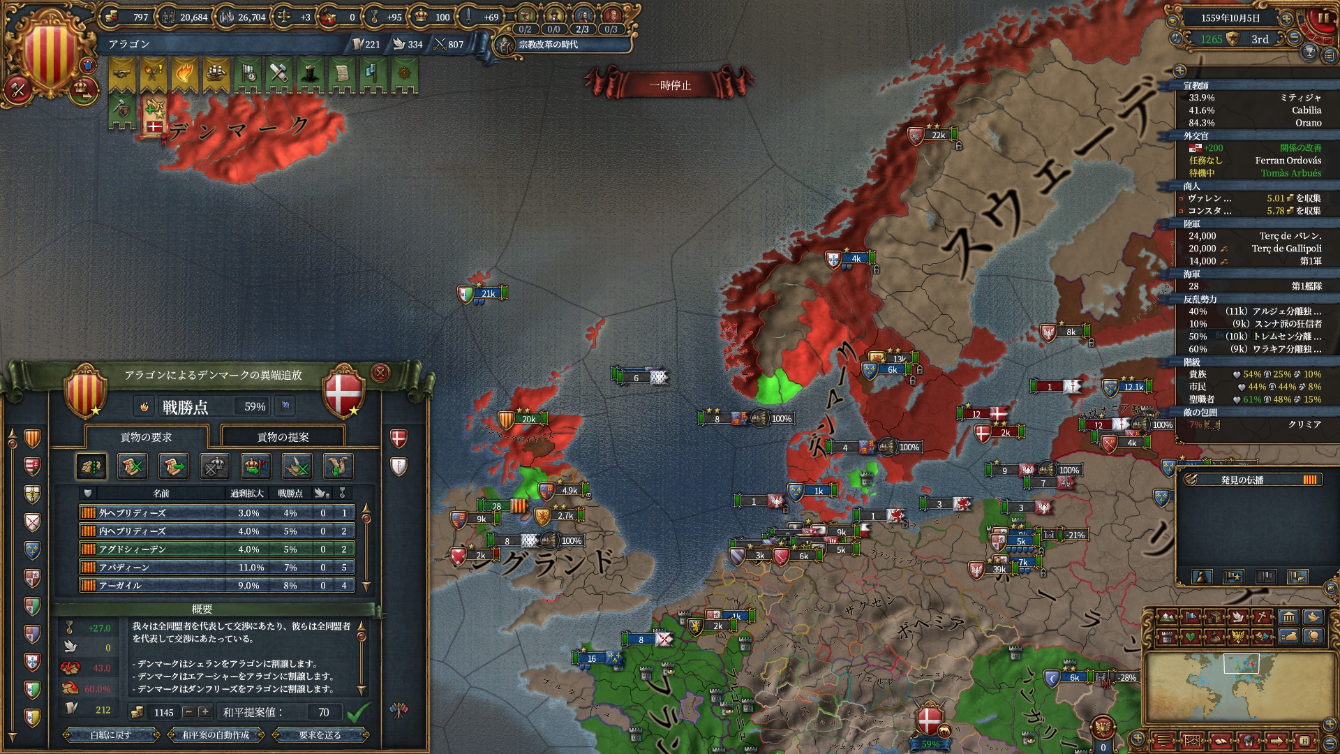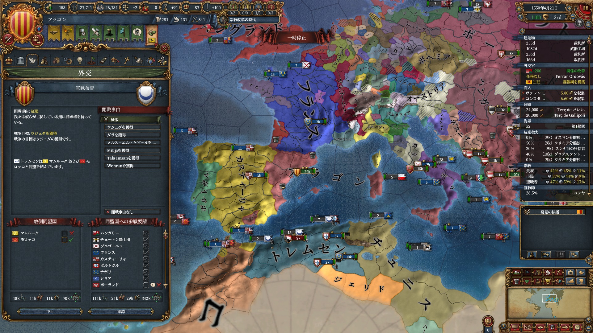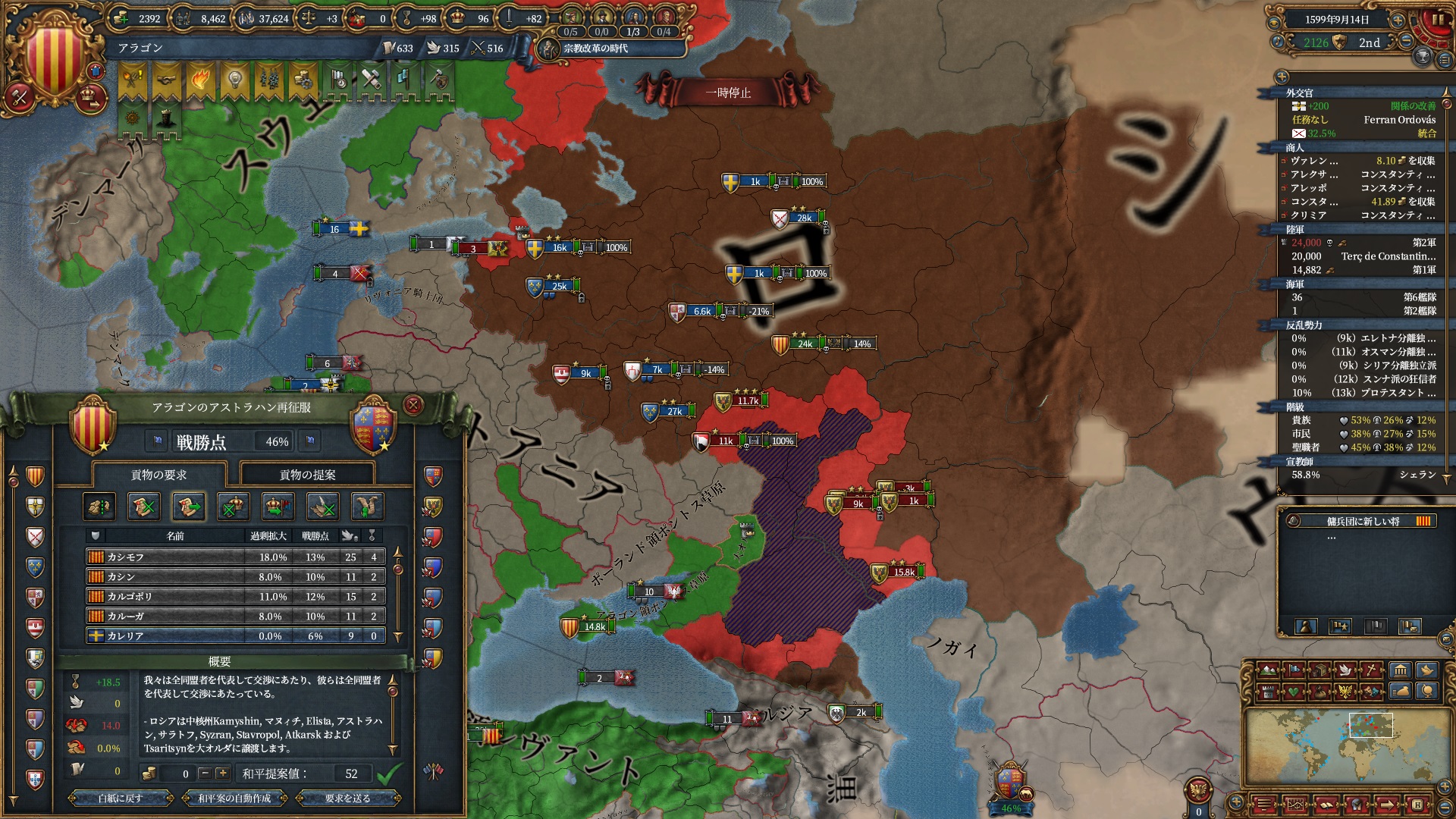 なおNIはすこぶる強力でAE-10%と関係の改善+25%は正教会の聖ニコラオスのイコンと併せてかなりの州を奪え、
