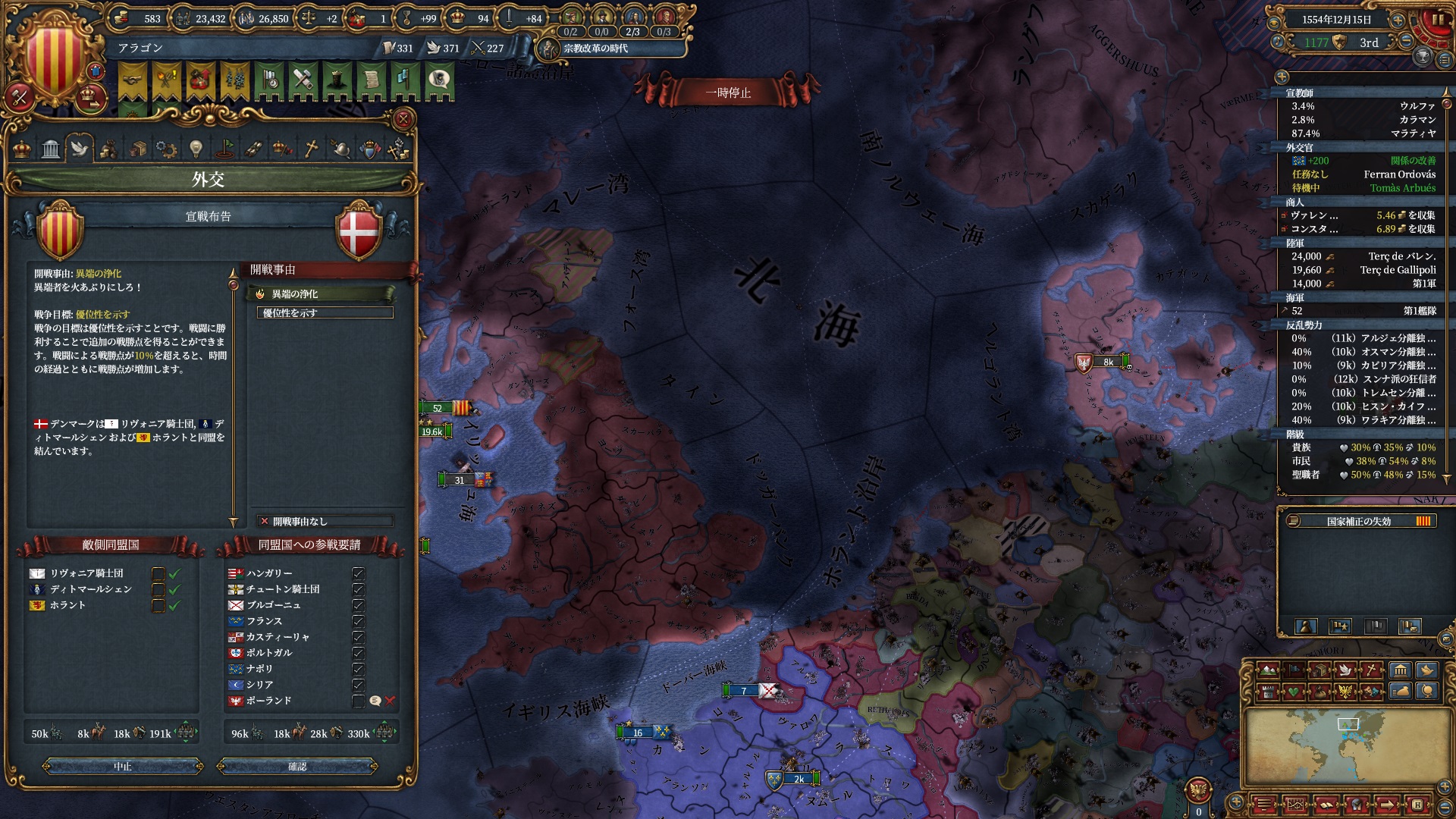 ジェノヴァやヴェネツィアたちょいちょい包囲網に入ろうとしてくるため、スウェーデンと同盟してなんとかしようとしています。