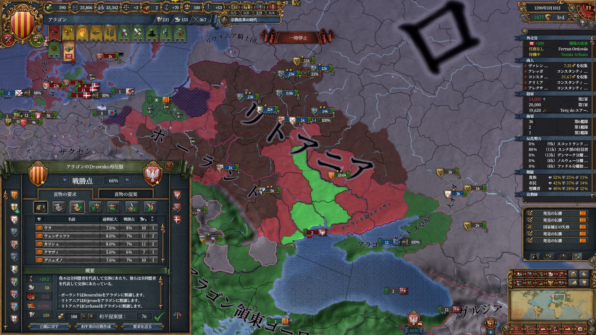 ポーランドからはチュートン騎士団のコア返還とクリミアノードの河口・リトアニア領のキエフの寺院を取りに行きます。