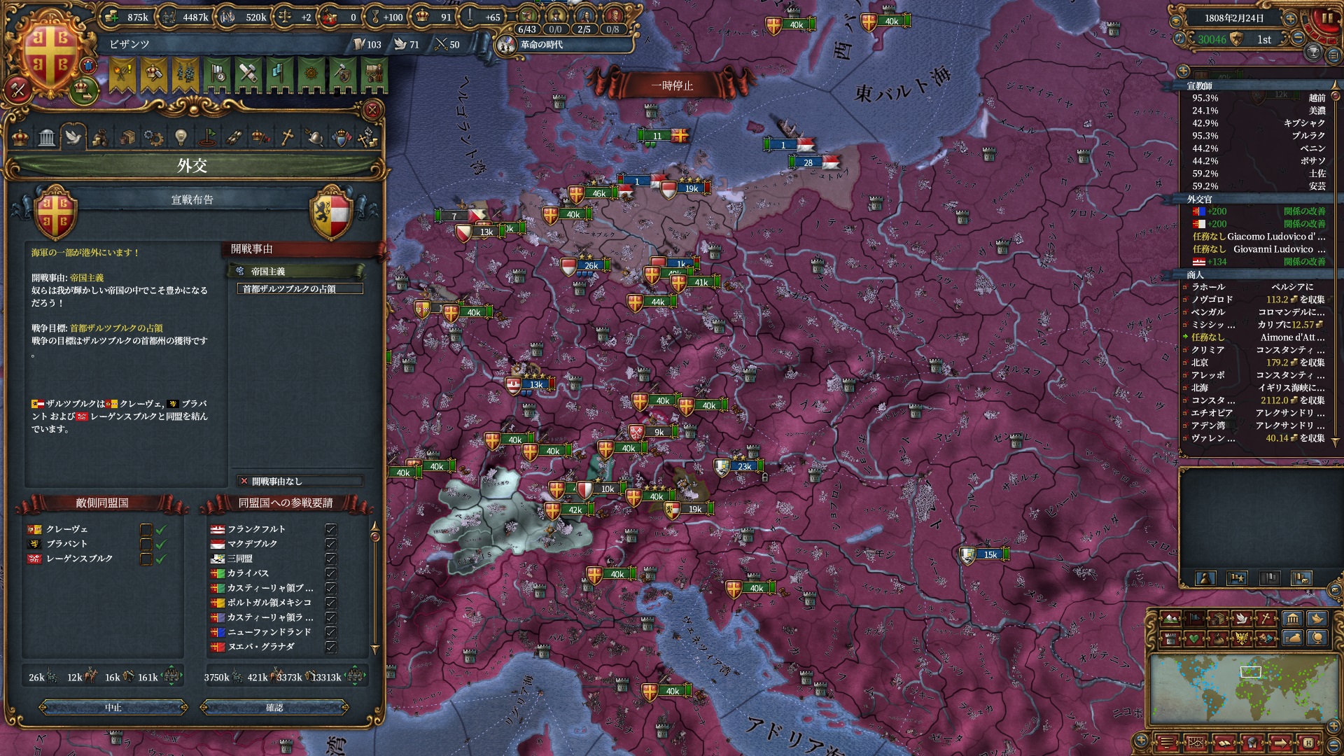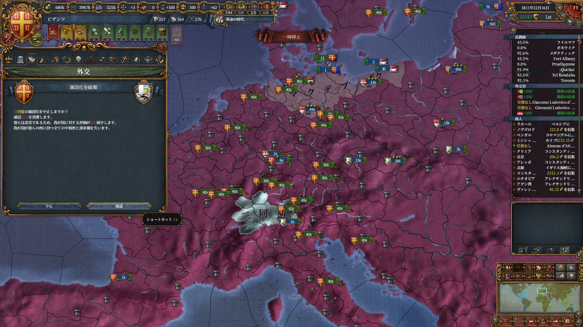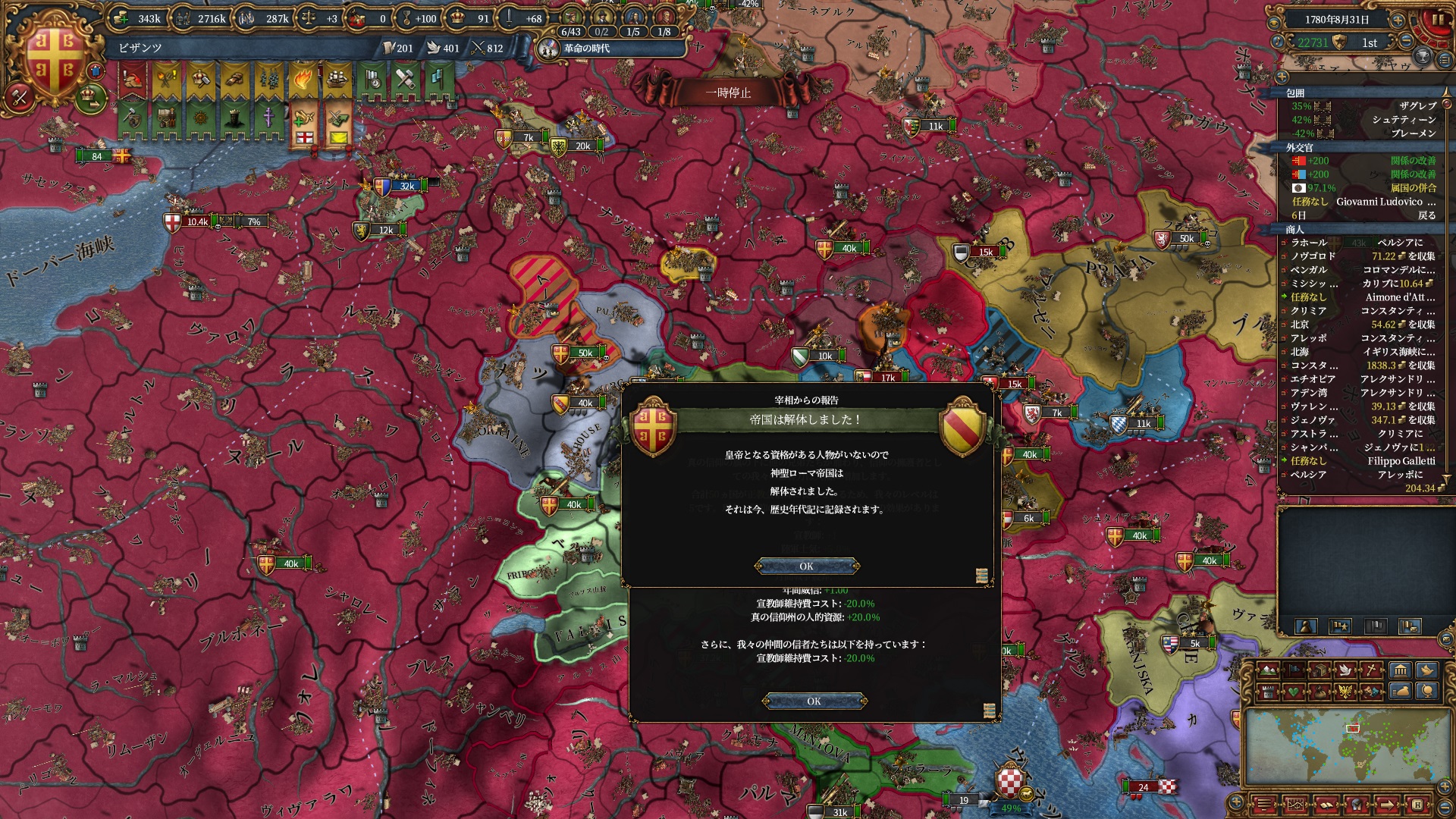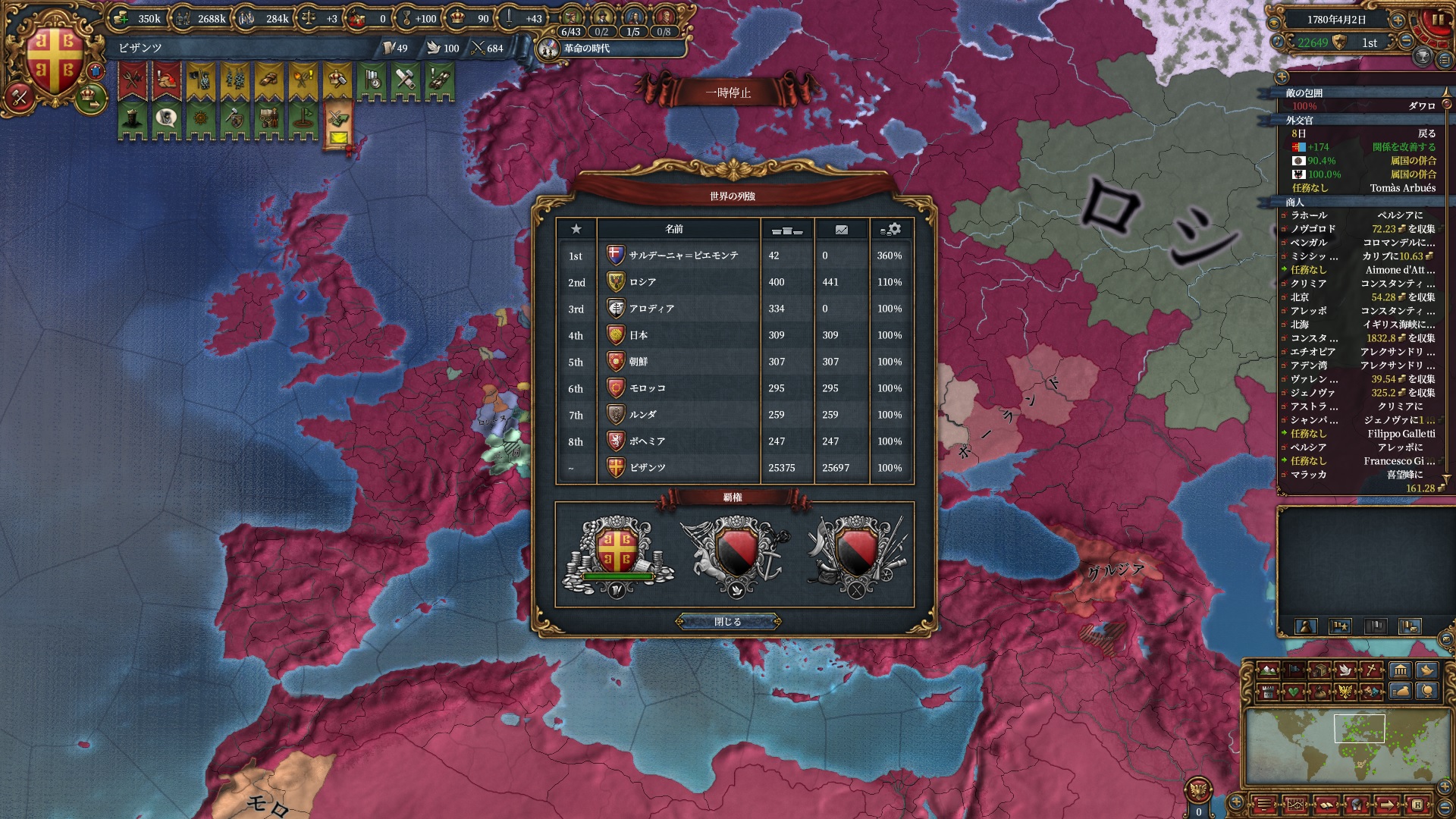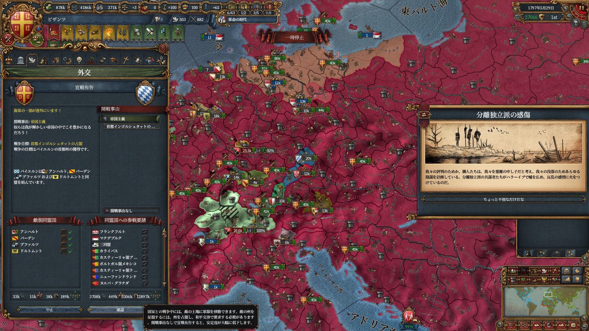 属国:フランクフルト・マクデブルク・三同盟・クラクフ衛星国(併合中)・アユタヤ衛星国(併合中)