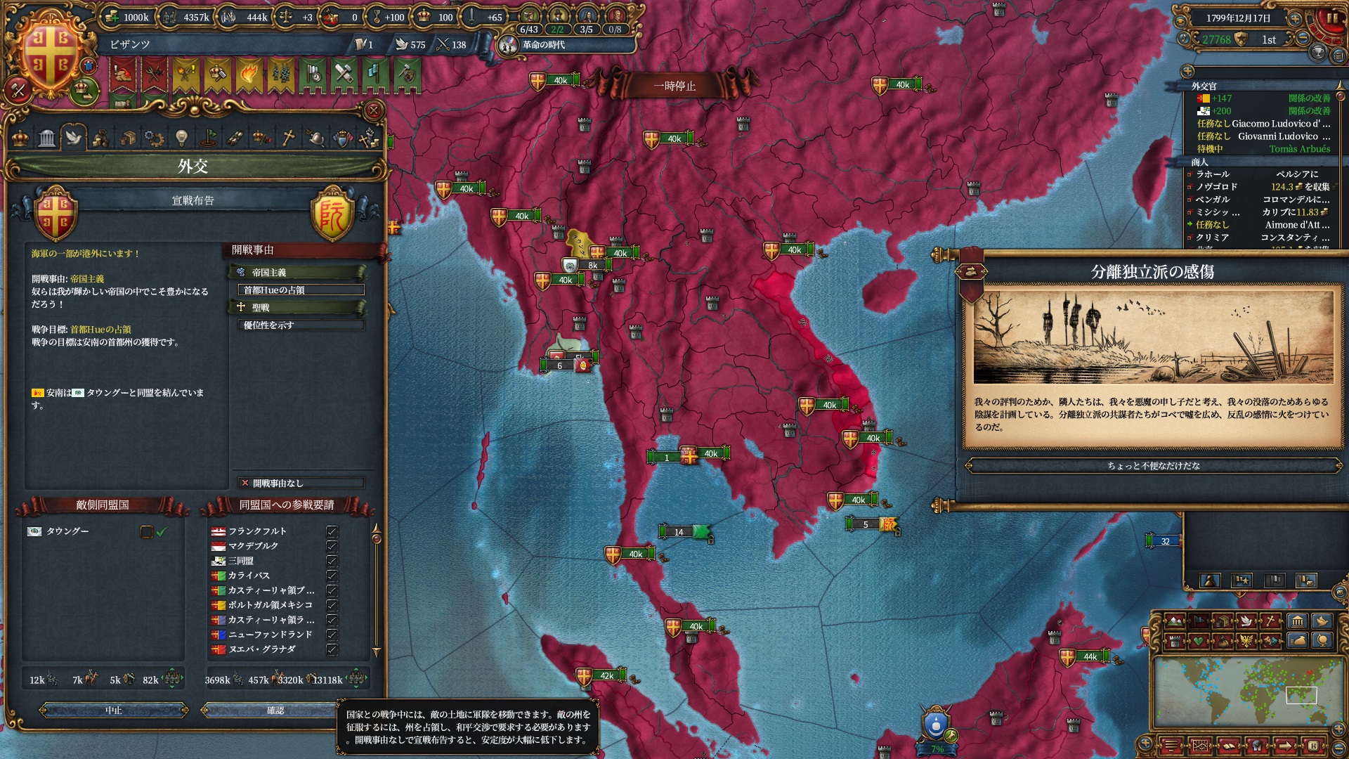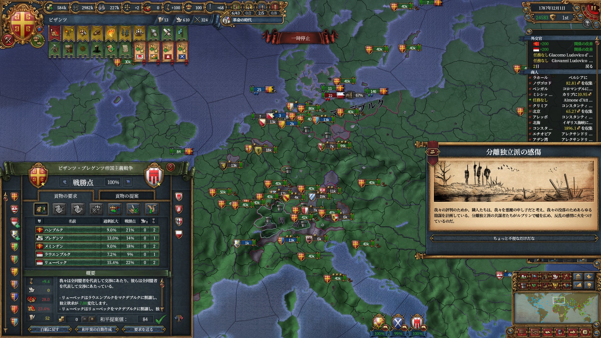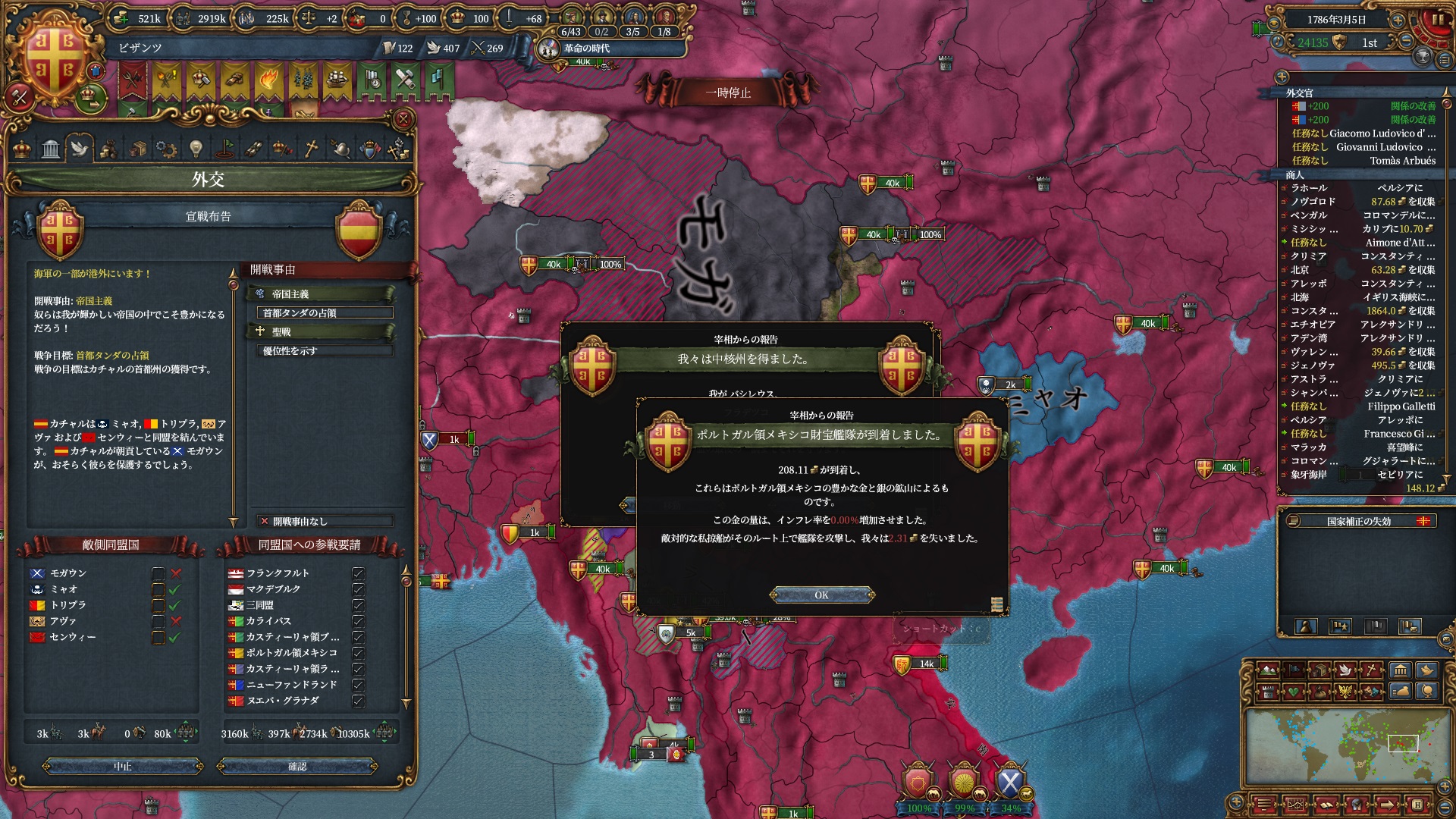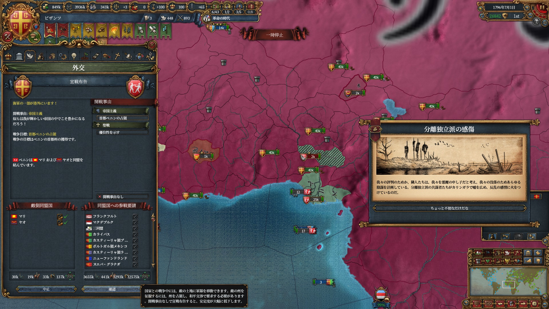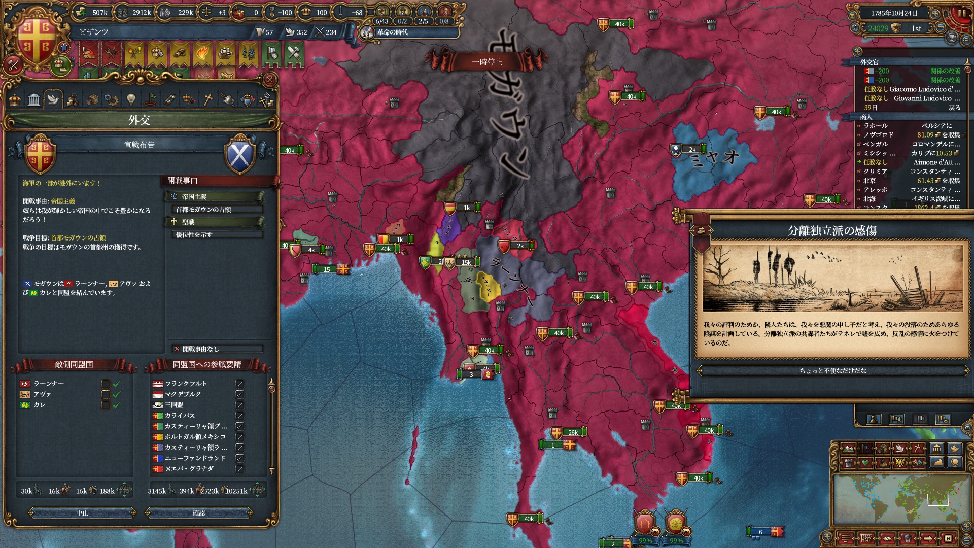属国:フランクフルト・マクデブルク・三同盟・クラクフ衛星国(併合中)・アユタヤ衛星国(併合中)
