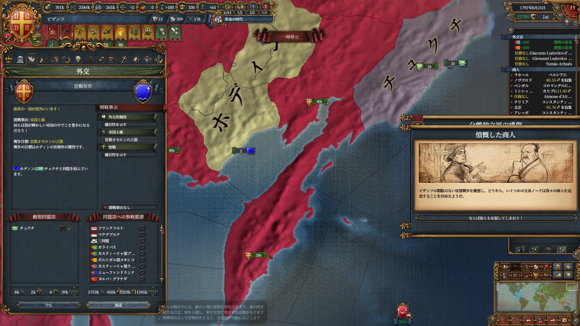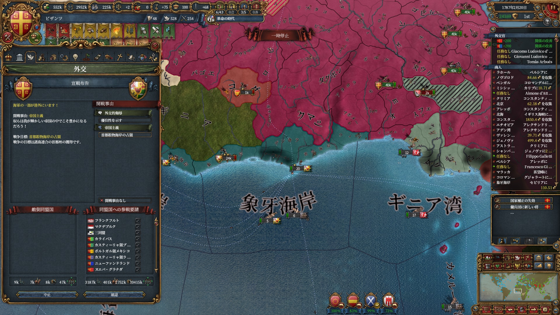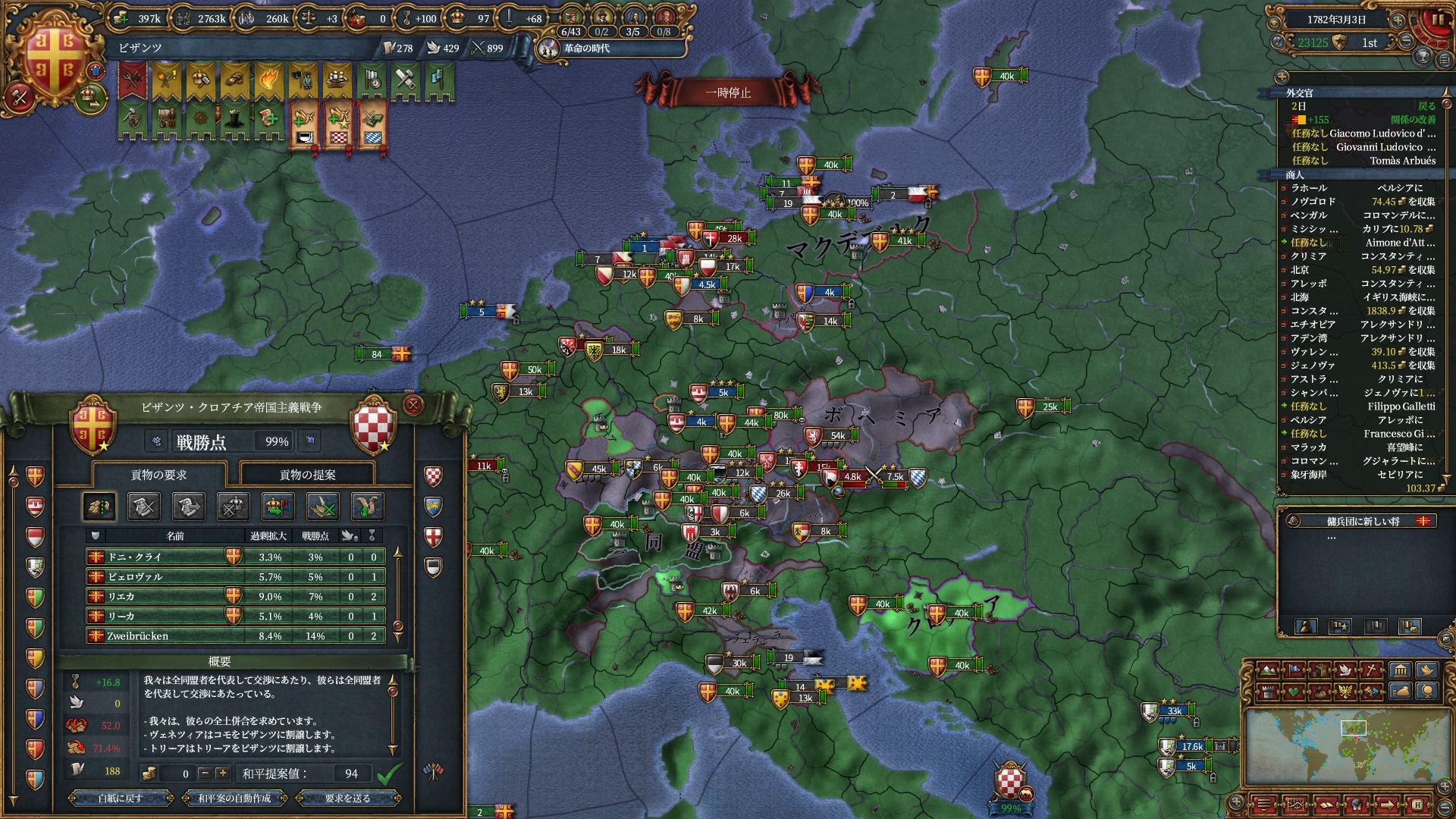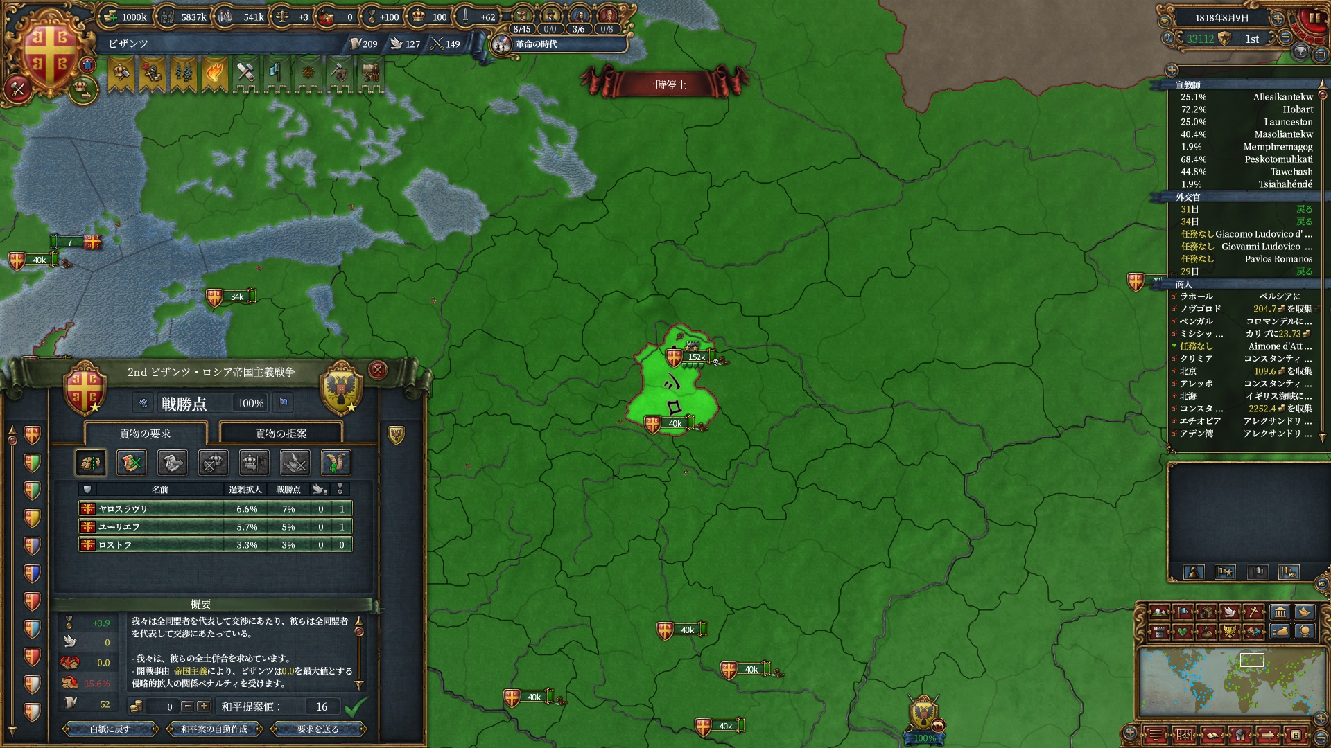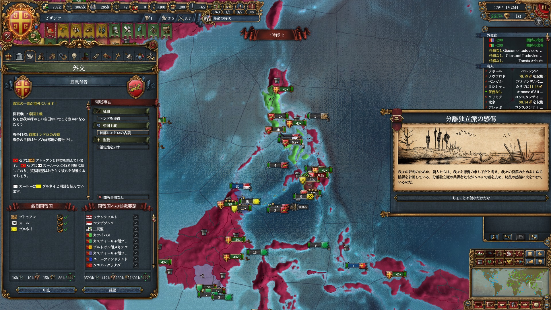 属国:フランクフルト・マクデブルク・三同盟・クラクフ衛星国(併合中)・アユタヤ衛星国(併合中)