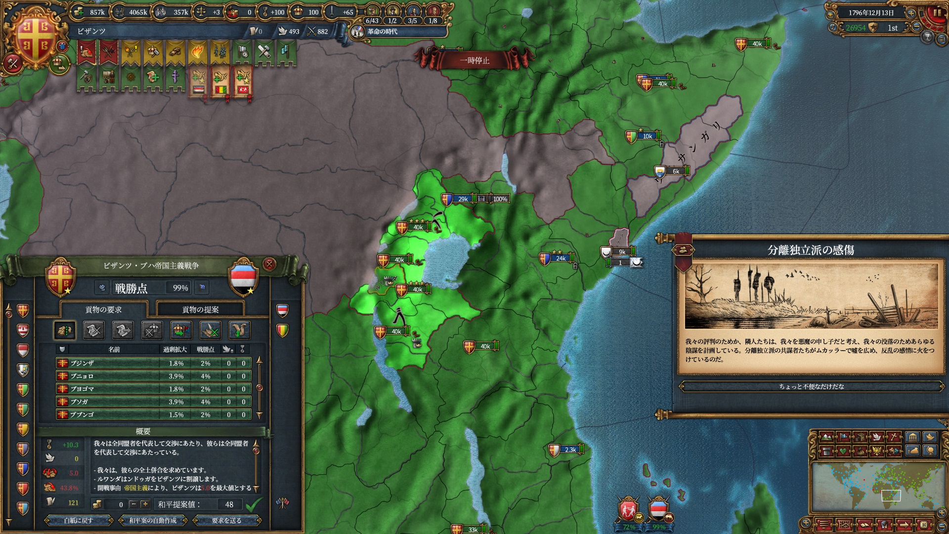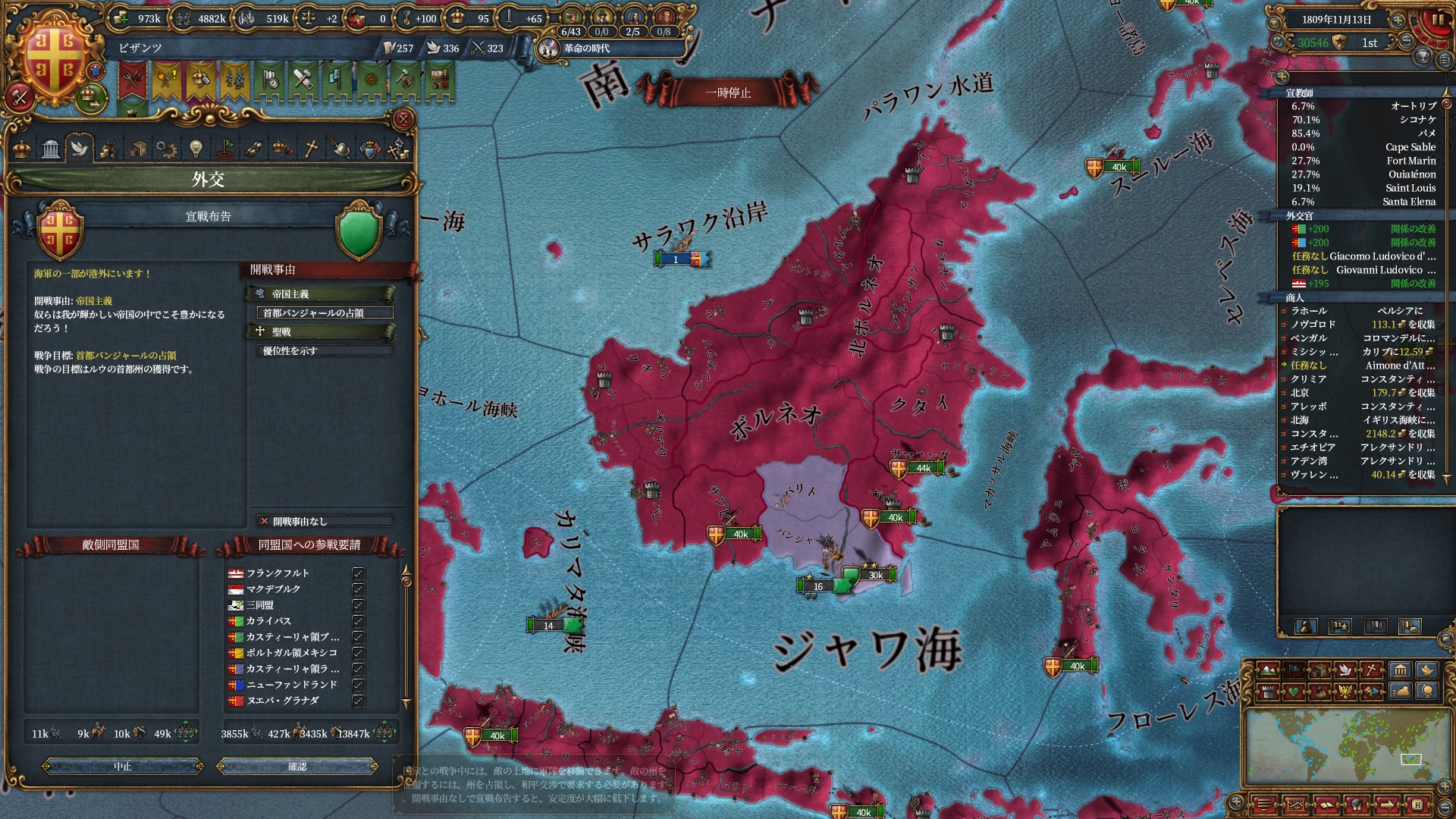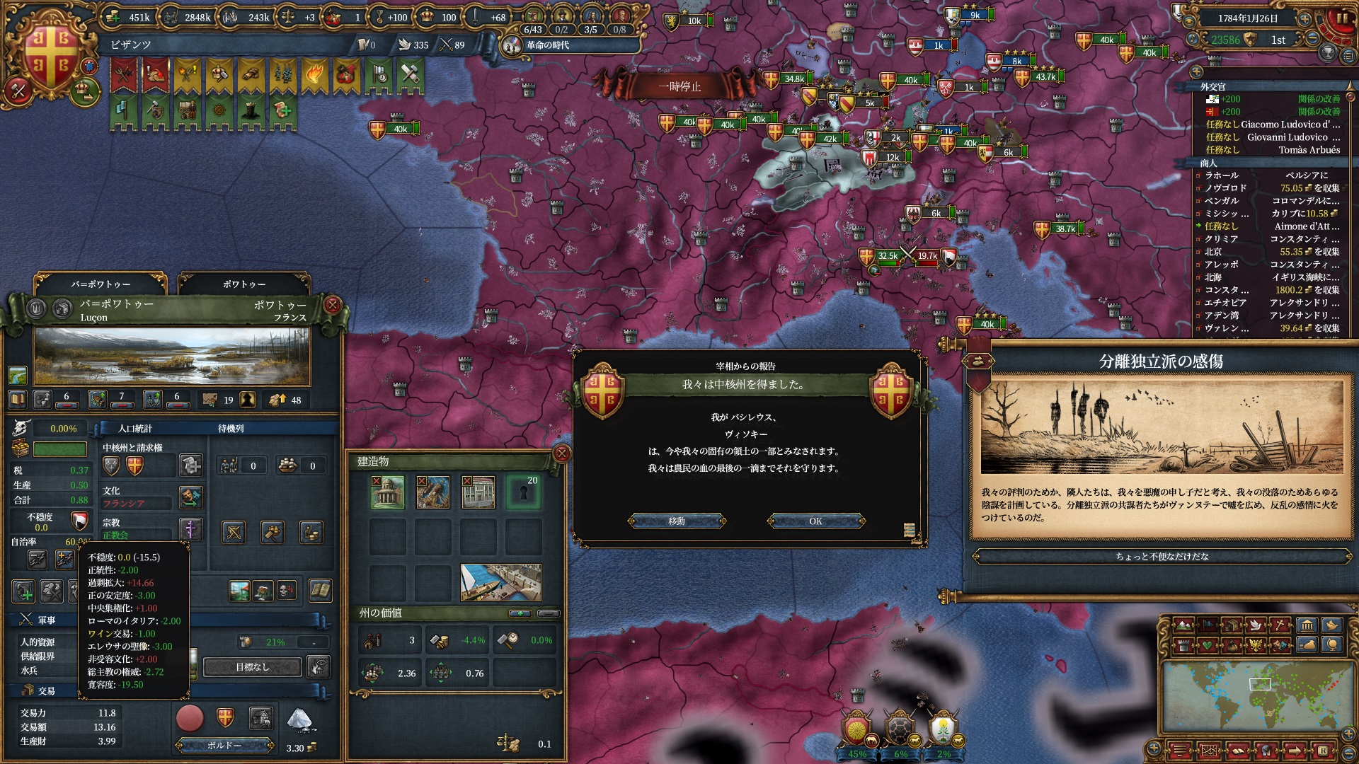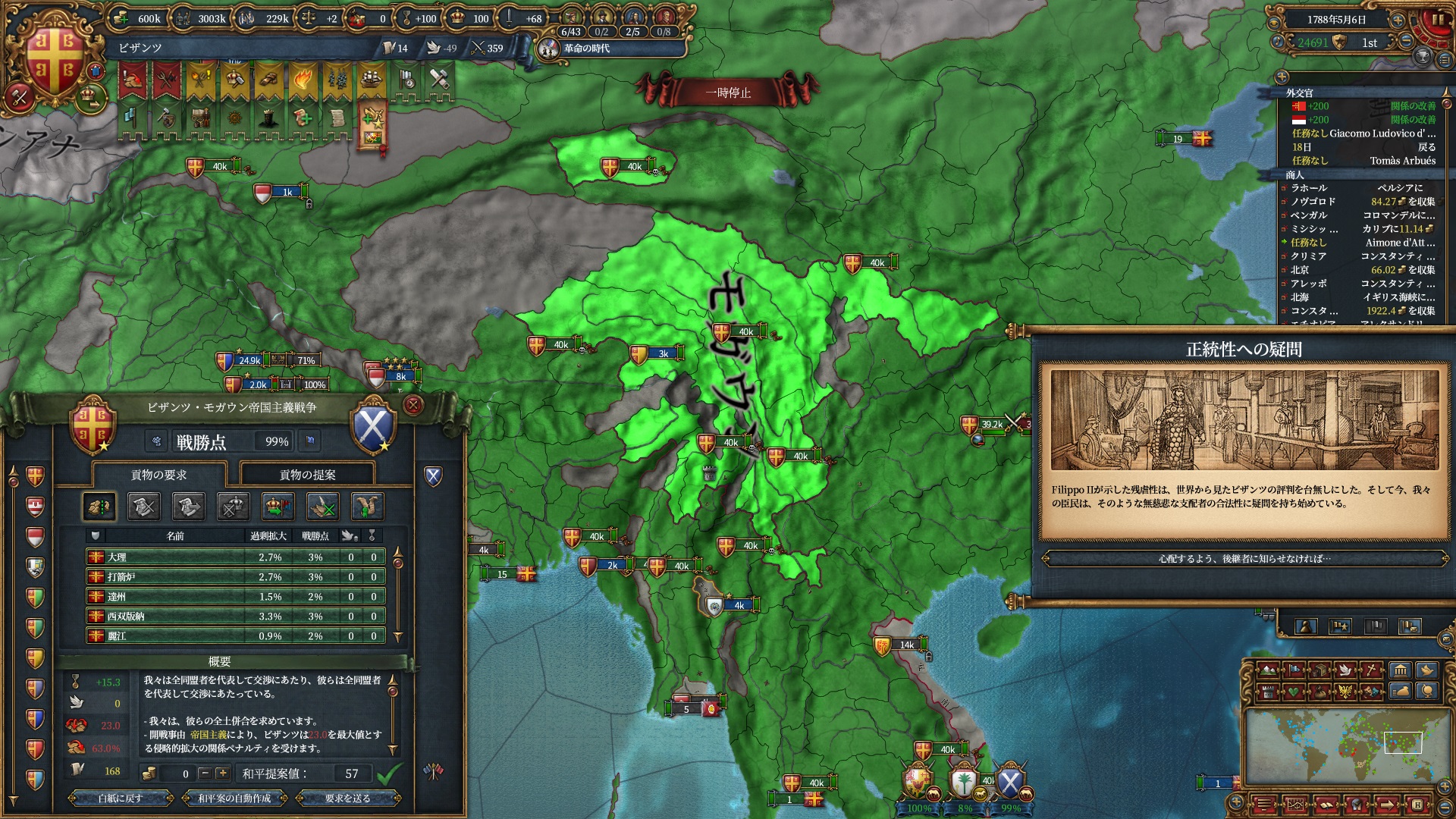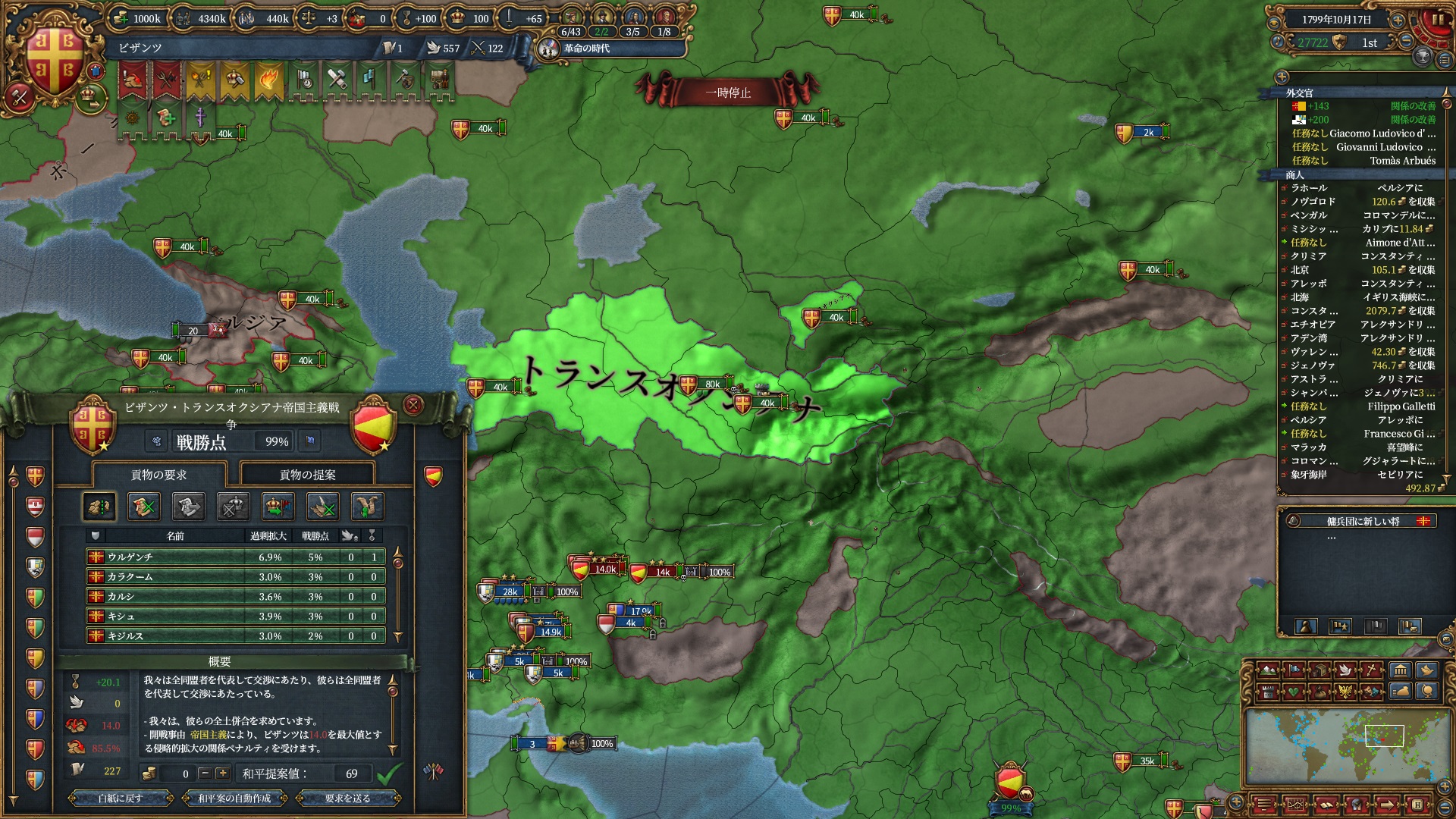 属国:フランクフルト・マクデブルク・三同盟・クラクフ衛星国(併合中)・アユタヤ衛星国(併合中)