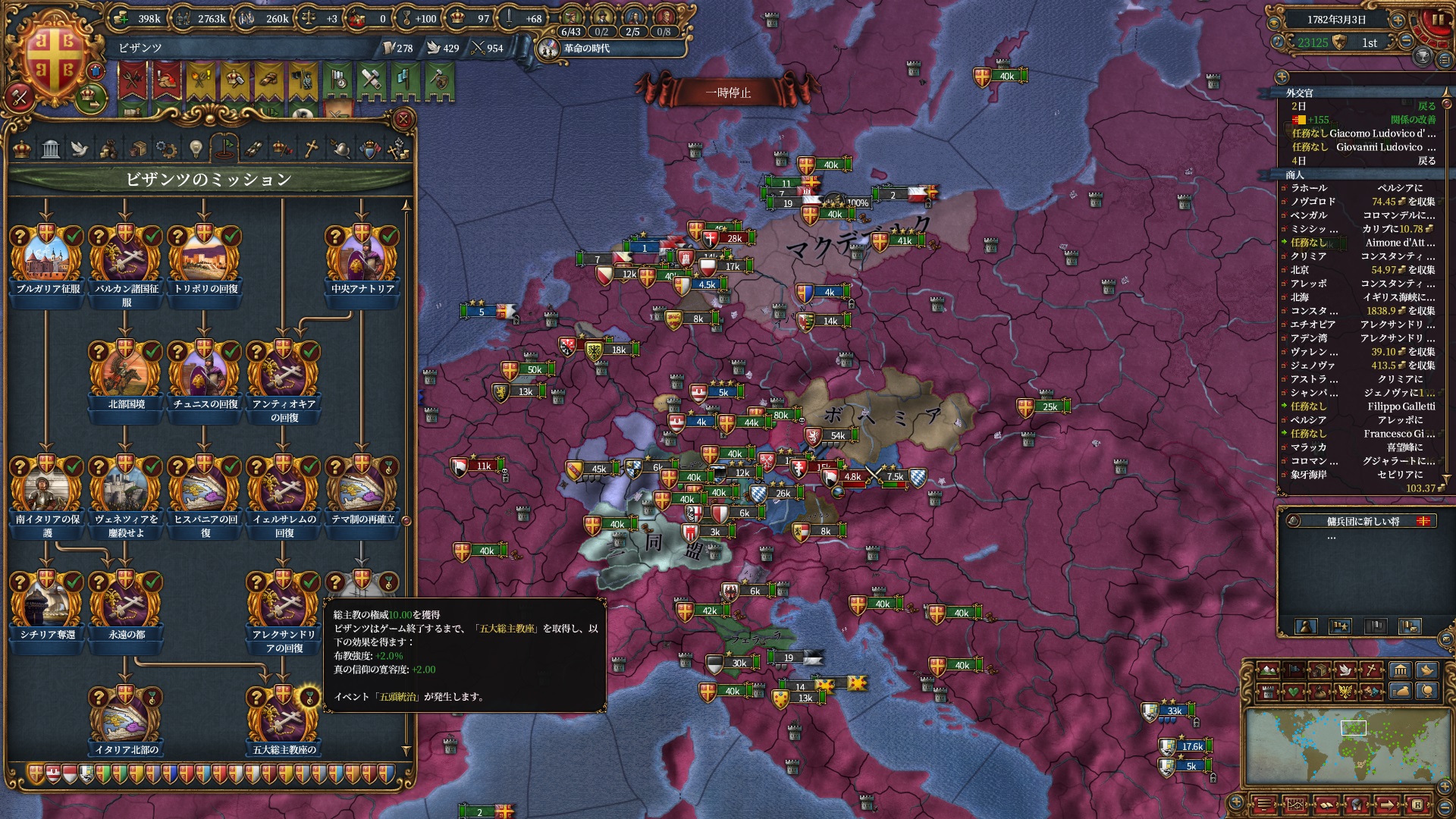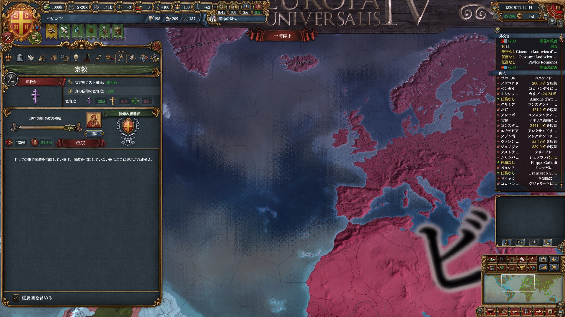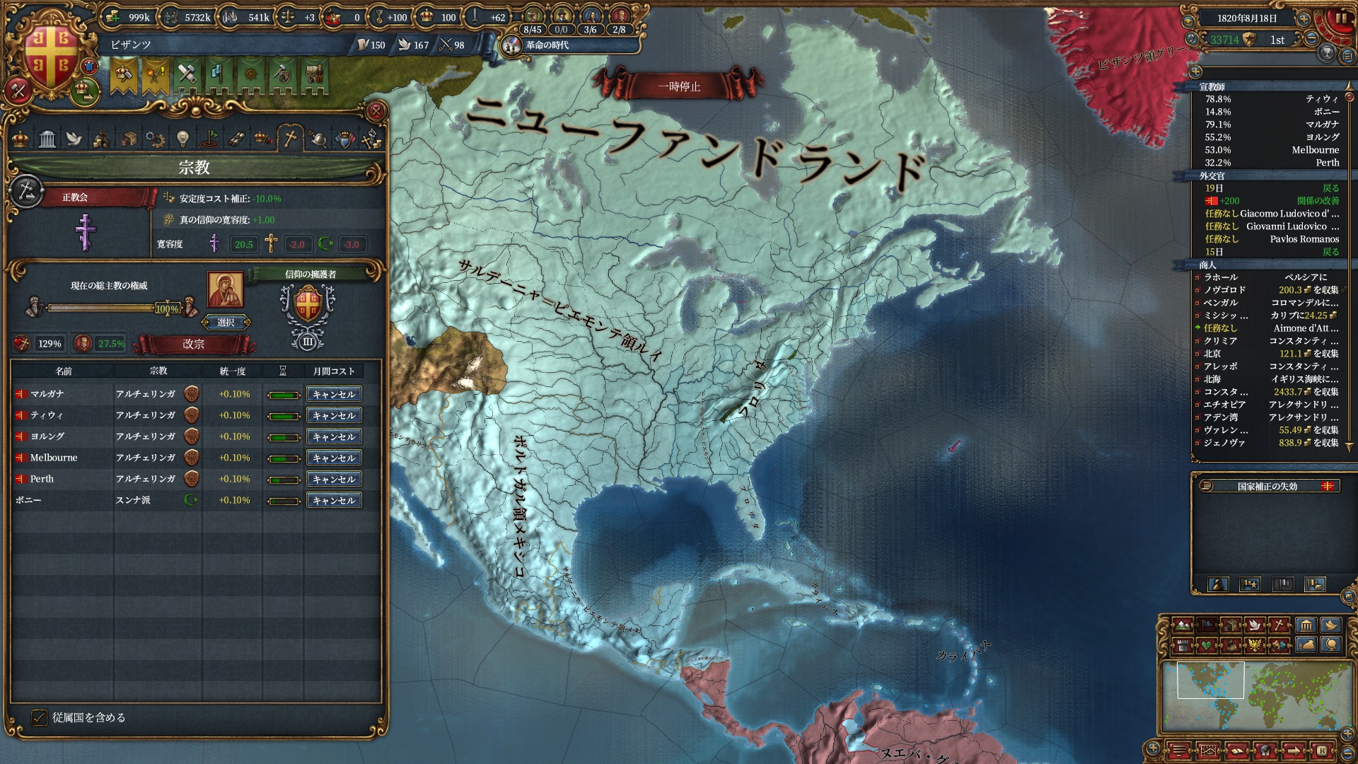 また別のミッションで異端への布教強度+10%が20年間与えられており、欧州及び植民地国家のキリスト教州はこの間に全力で改宗しています。