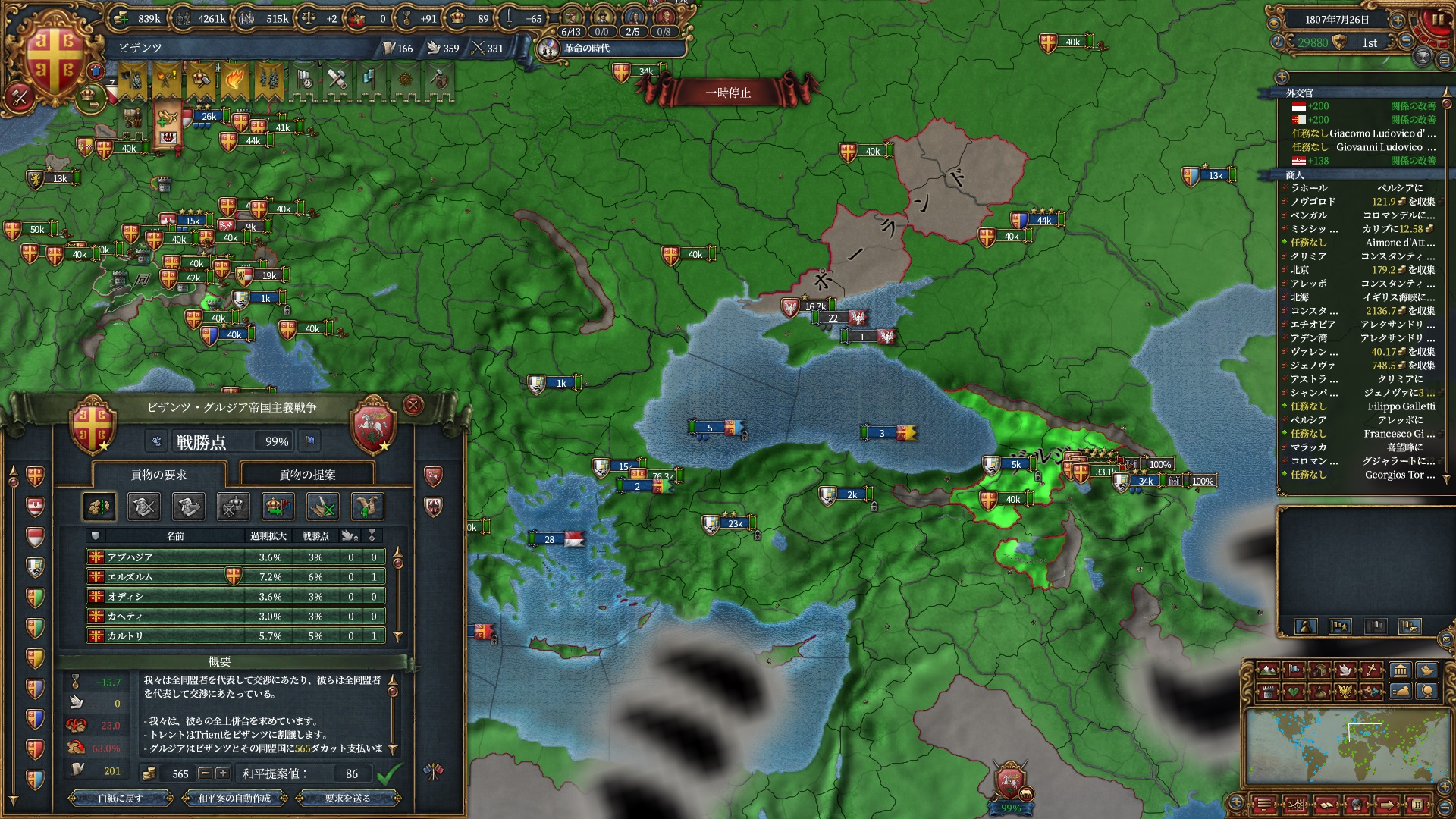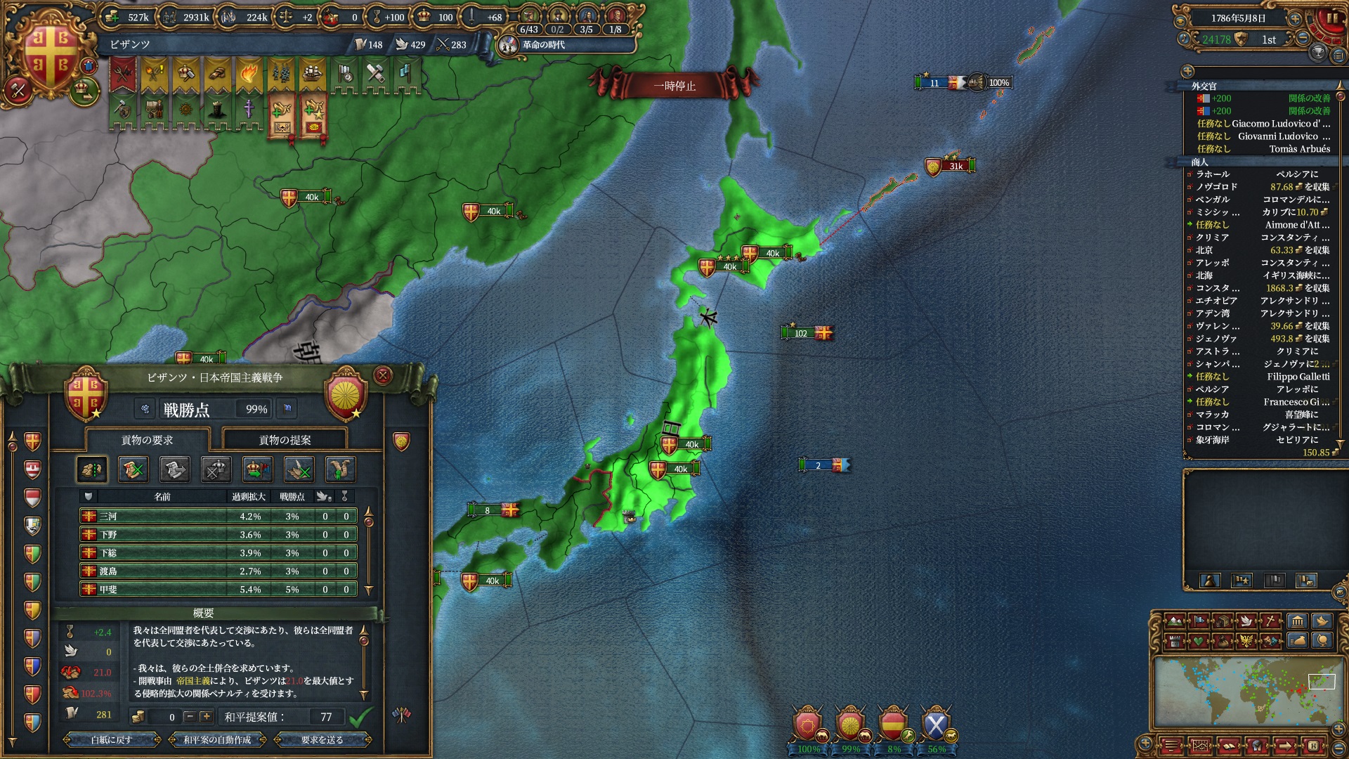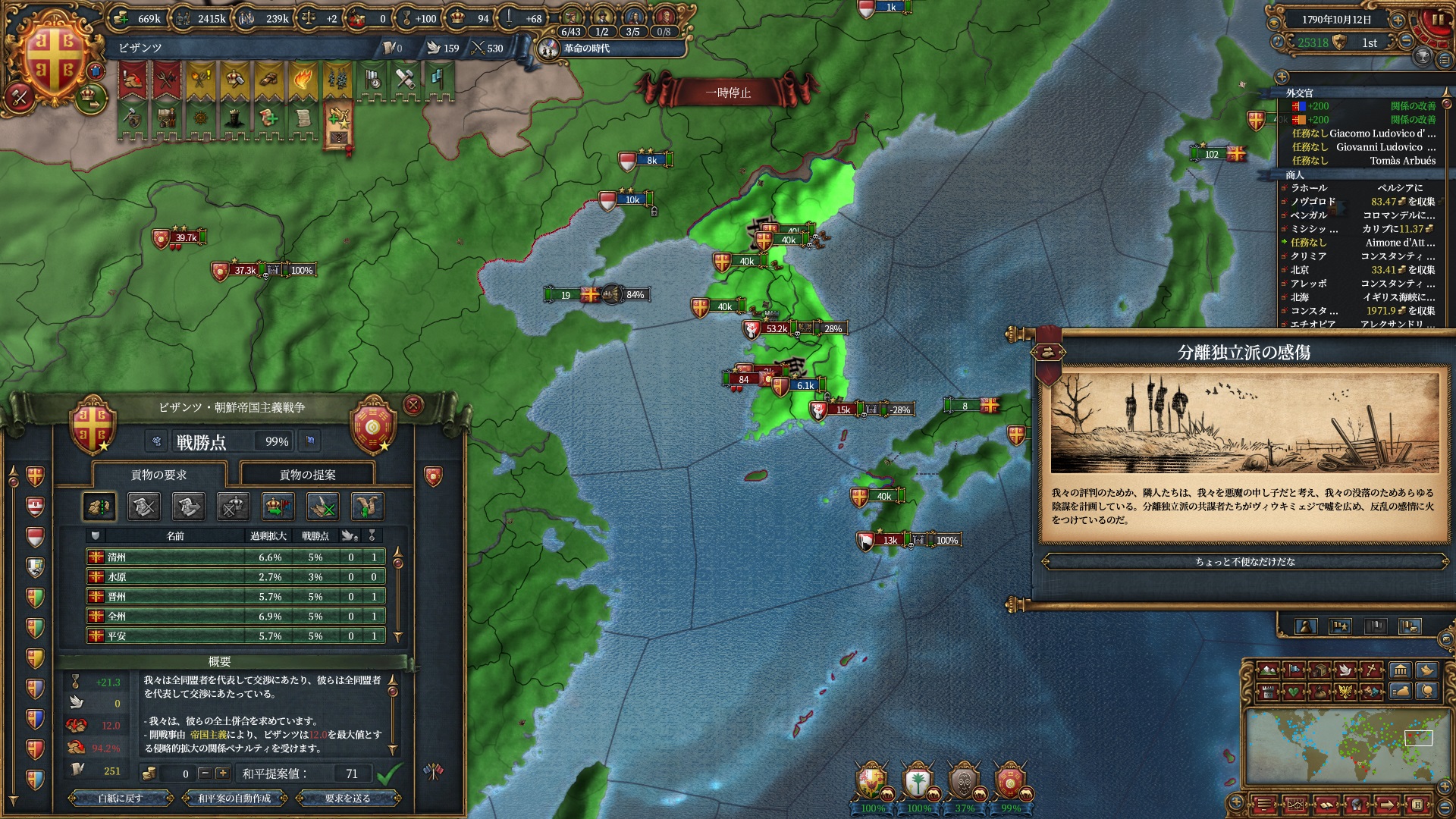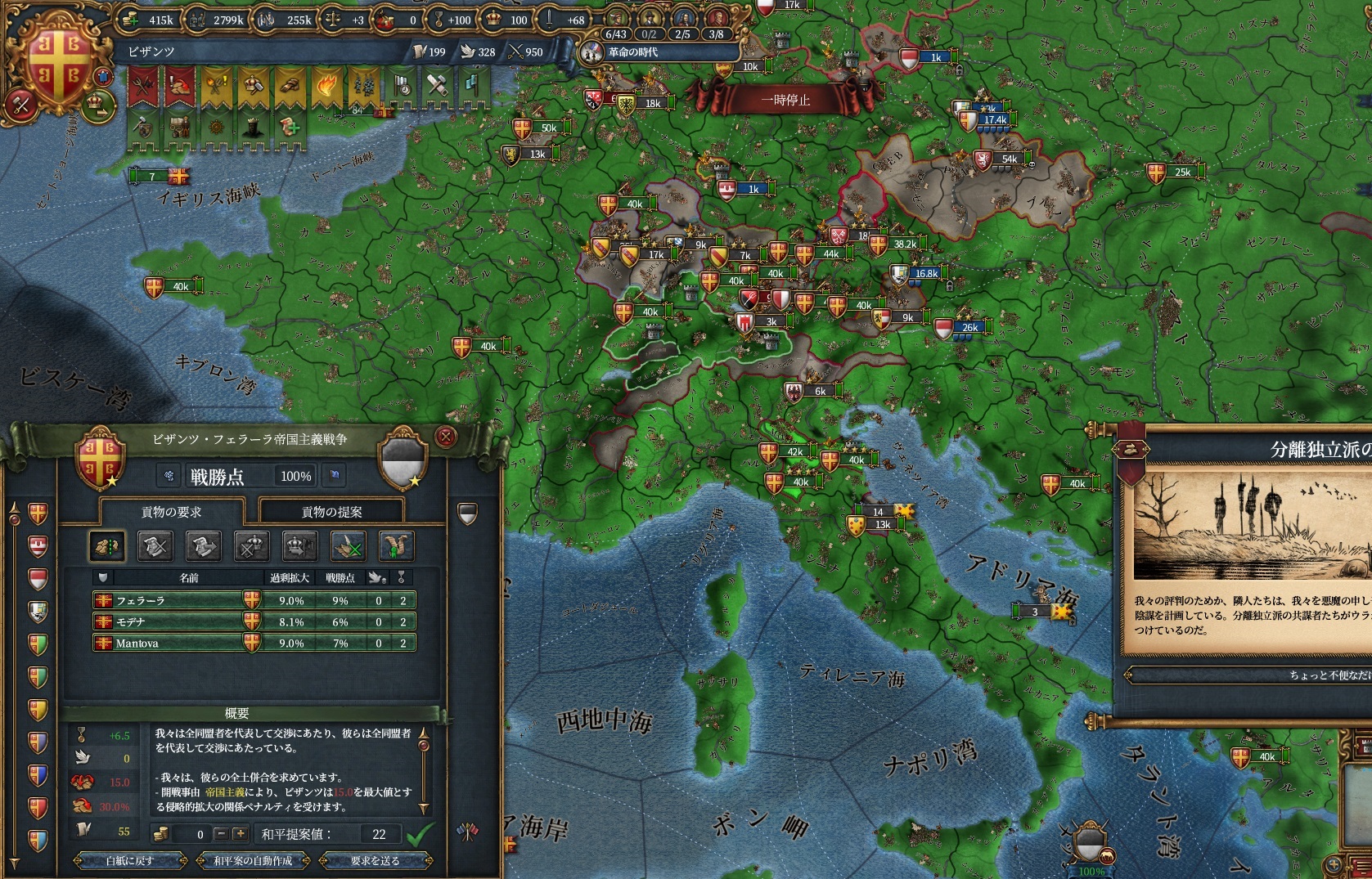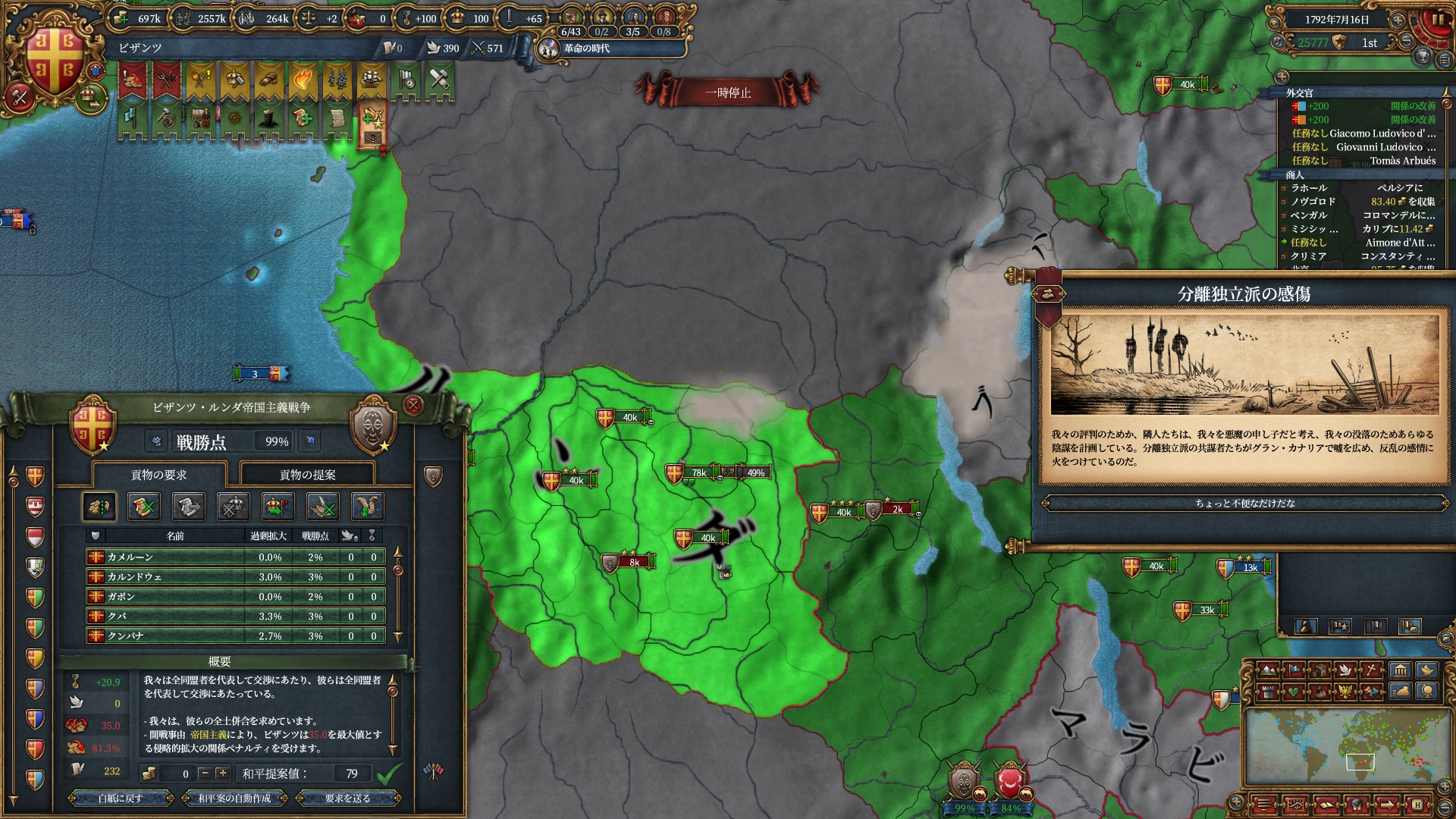 後半は暇なので停戦破りでも良かったのですがどうせ改宗が終わるまで待つだけだったのでゆっくりやっています。