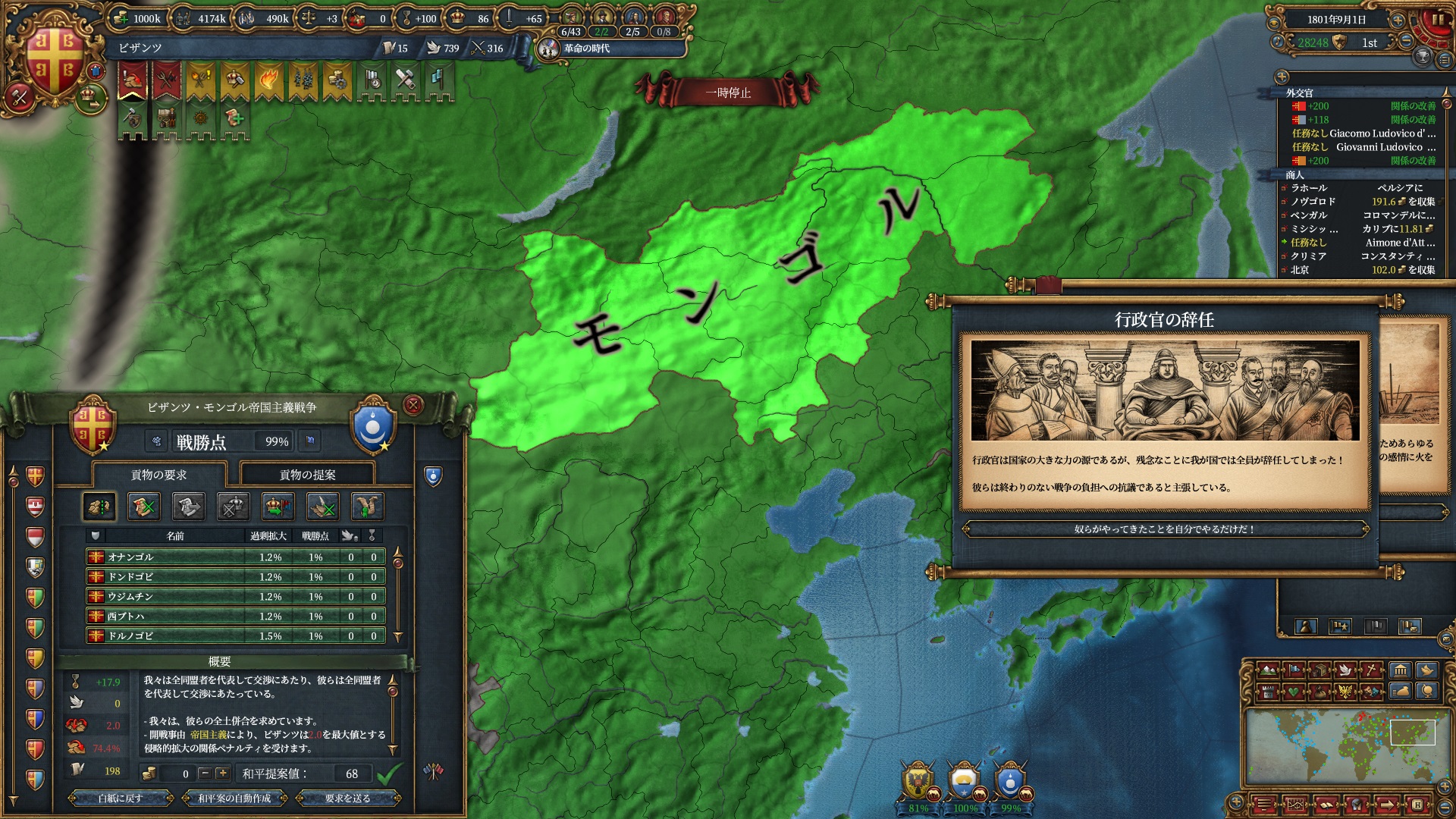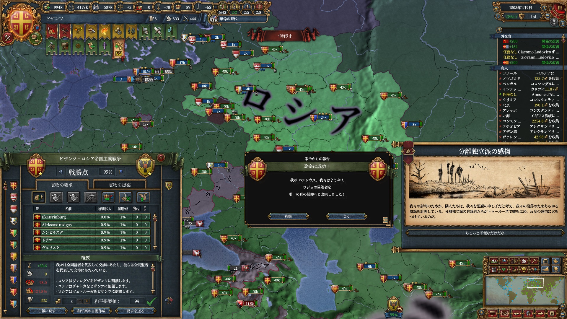 今回作った属国達はなかなか改宗を頑張ってくれていたのもあり本来はこれがスタンダードなんだと思う次第。。。