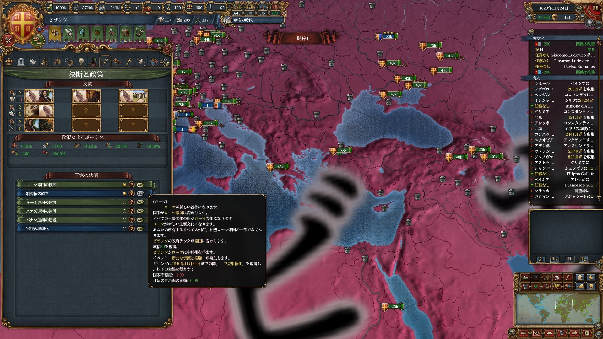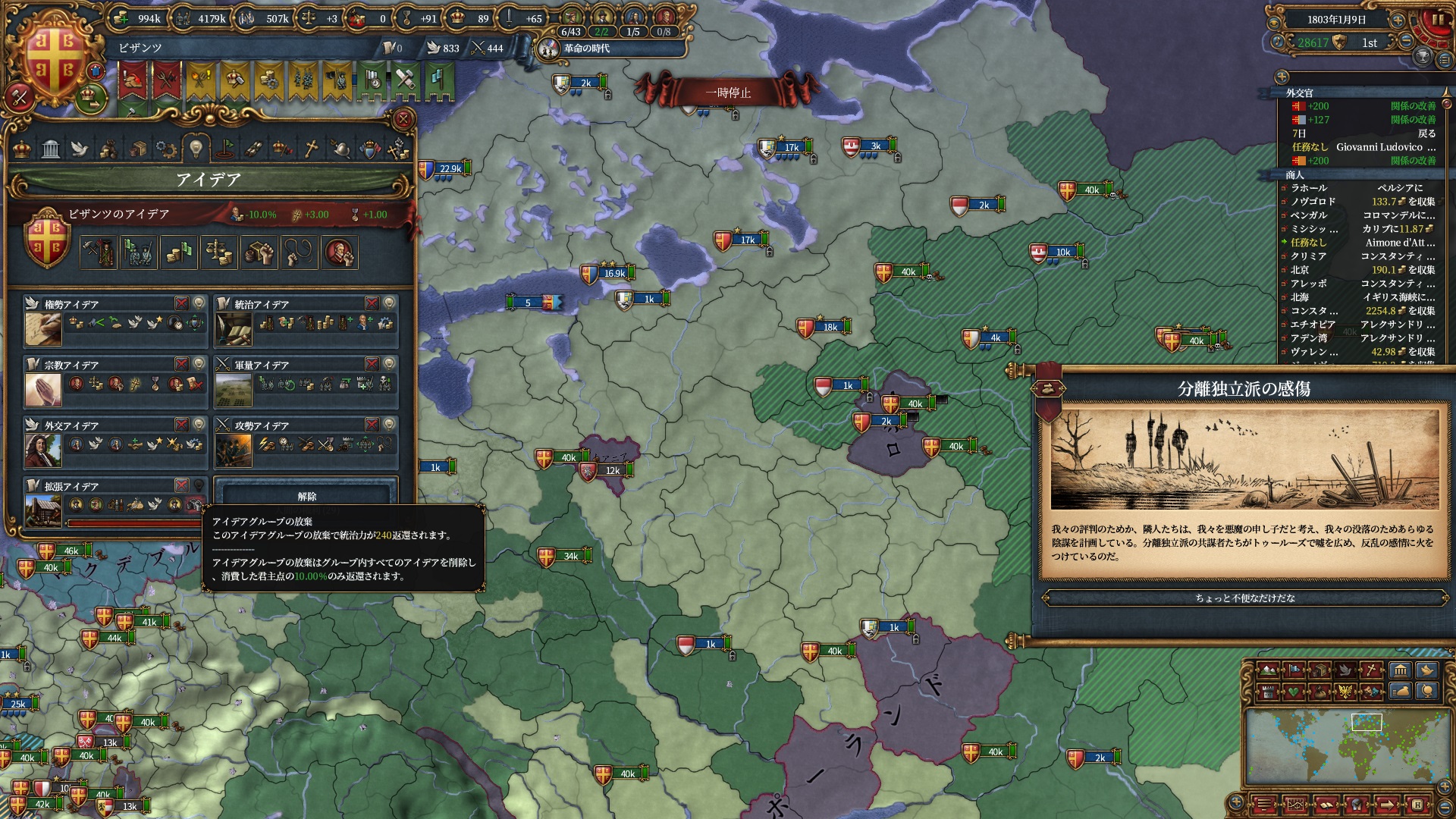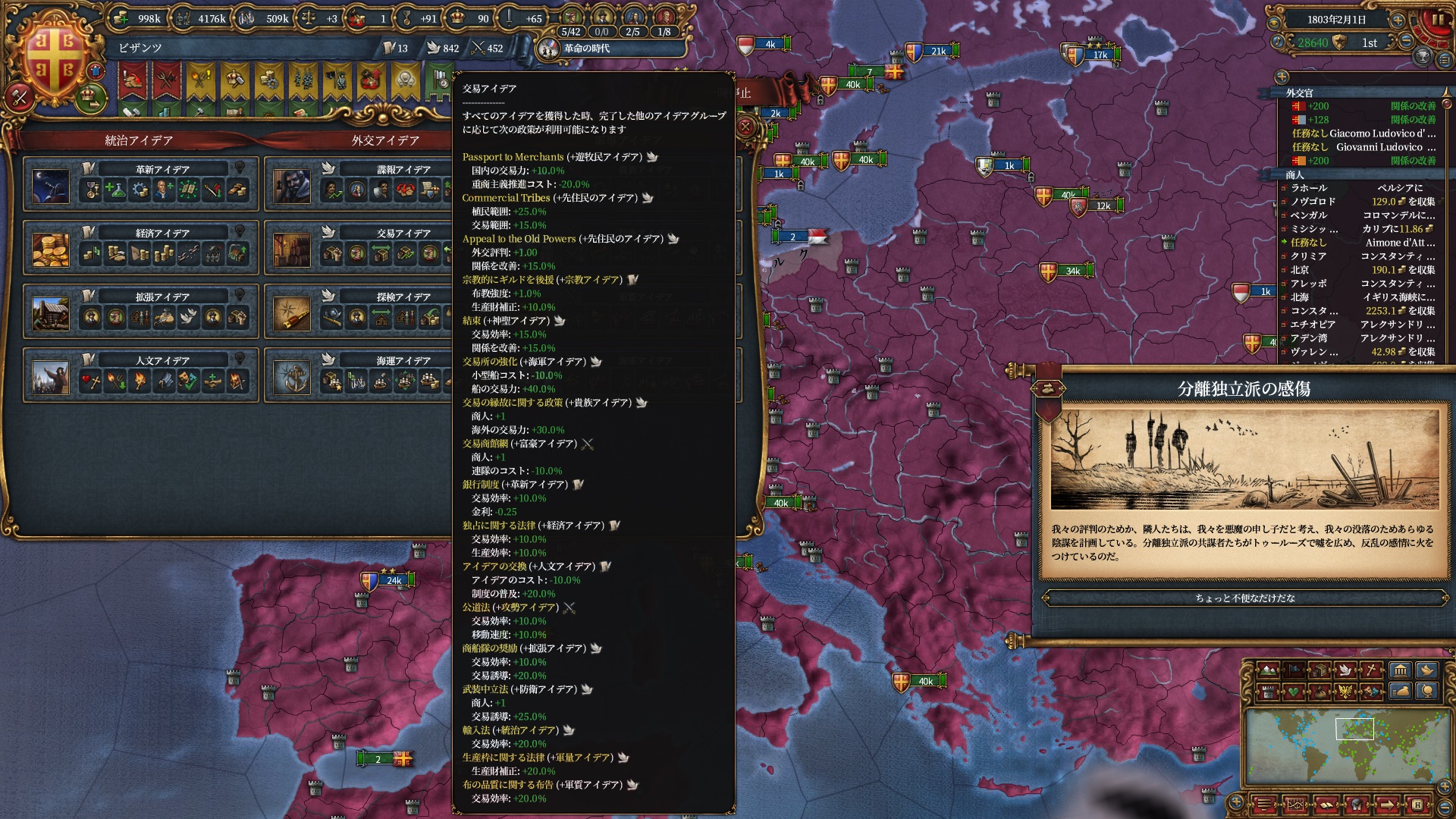 また現時点で余裕がある交易アイデアを取得し宗教+交易ポリシーの布教強度+1%を狙いにいきます。
