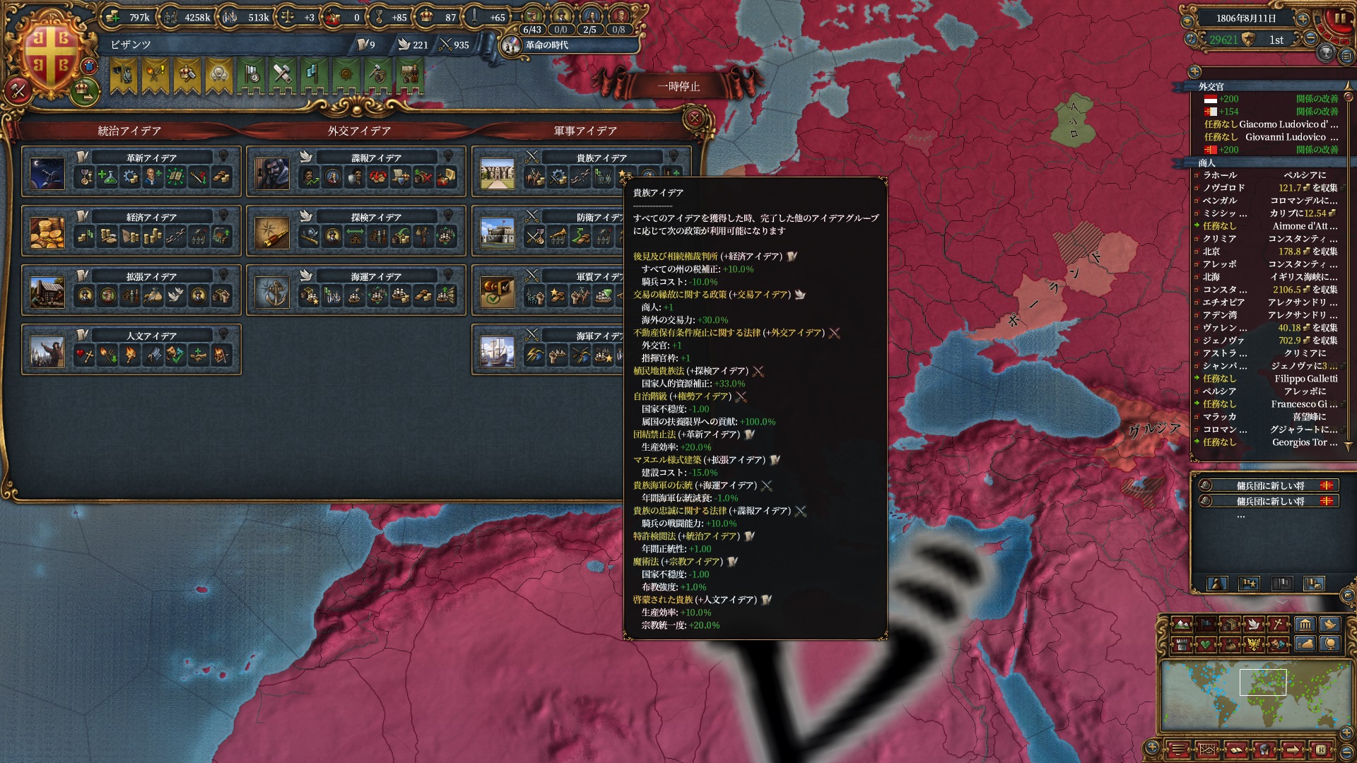 またここで戦争を暫くやめ統治技術29にし最後のアイデア貴族を取ります。