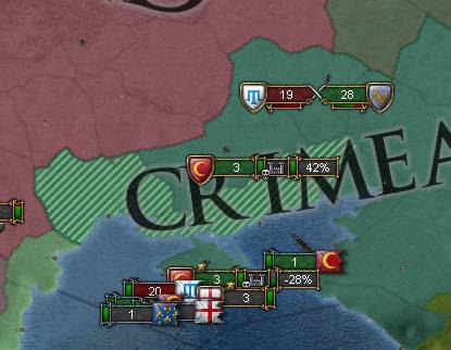 早速ヨーロッパ方面にいた部隊をクリミア国境に貼り付けて戦争に取り掛かります