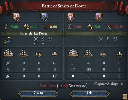 海上では、イングランド海軍が輸送のため離れたところを撃破した西欧連合が制海権を握ります