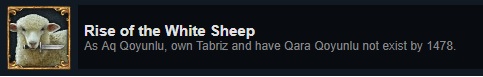 短期決戦物の最たる目標である"Rise of the White Sheep"。その目標年はなんと1478年です。ゲームでなく現実でチートだったウズン・ハサンの足跡を辿ります。