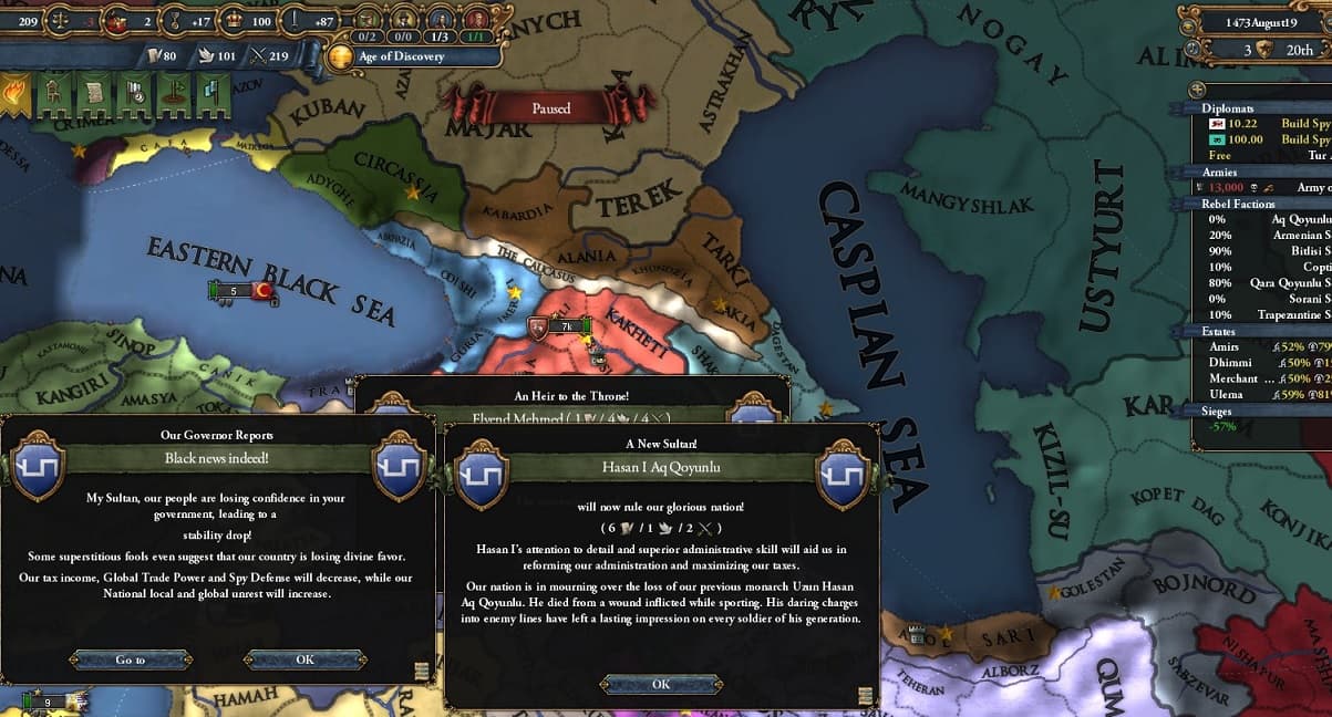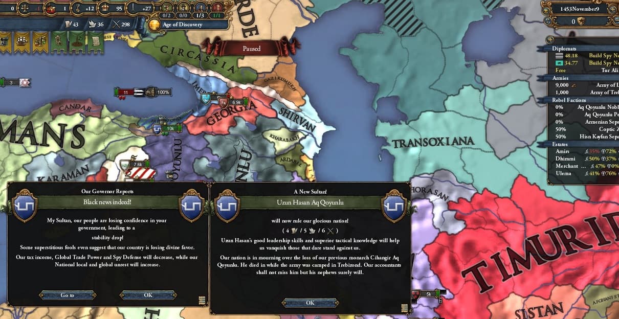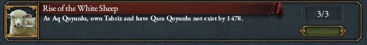 これにより史実と同じ年にAq Qoyunluの英主ウズン・ハサンの即位がなりました。