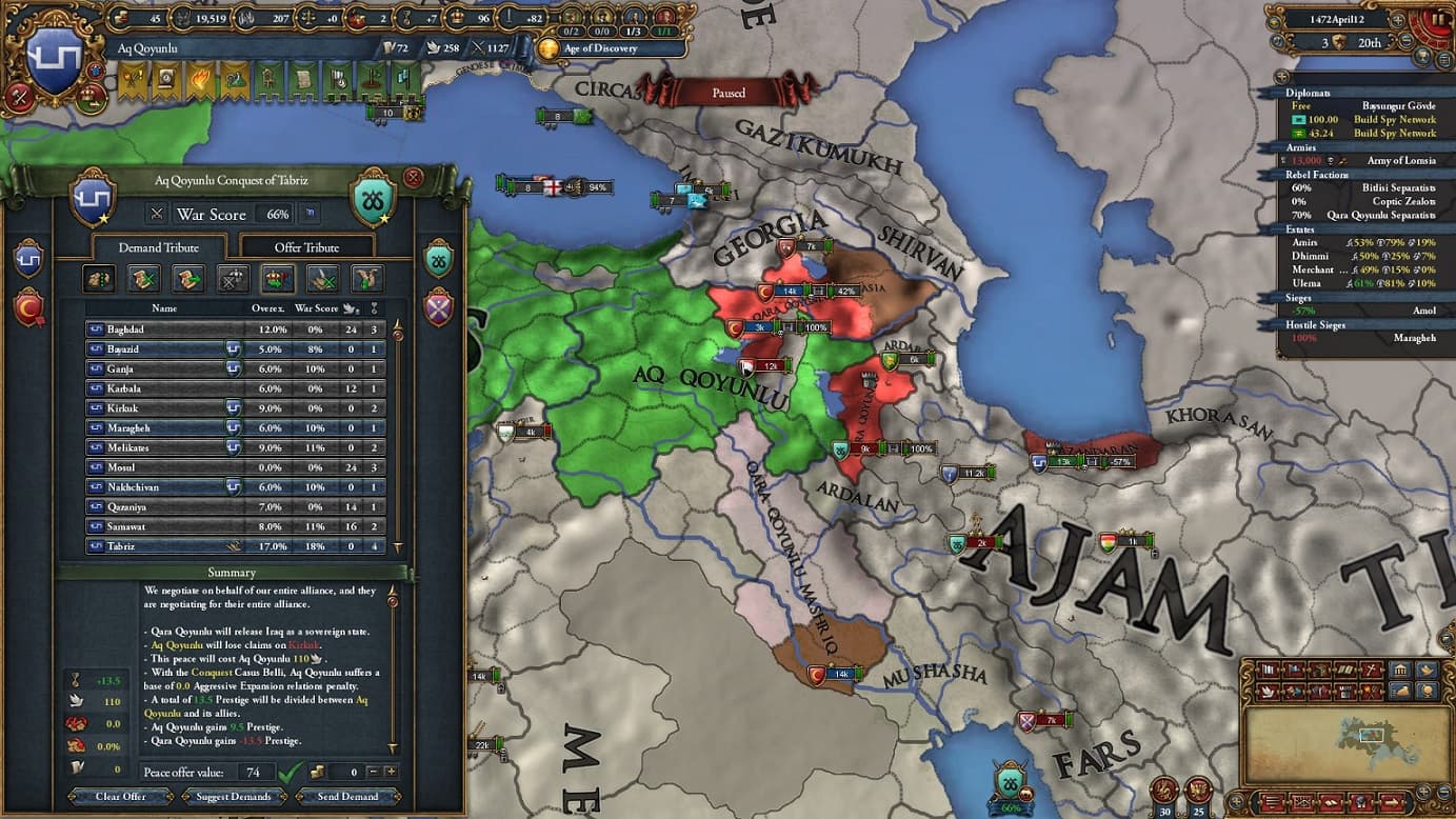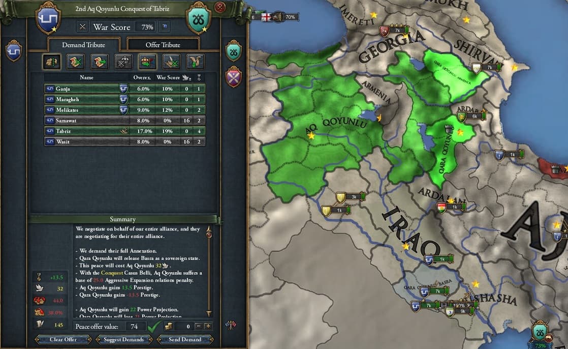 請求権がないので安定度を下げてしまいますが、Qara Qoyunluの警告を回避しつつ豊富な永久請求権を獲得します。