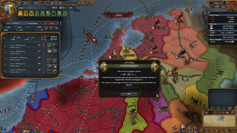 心労が溜まってか、ネーデルラントの統合に生涯を捧げた国王アーノルド=エグモントが崩御