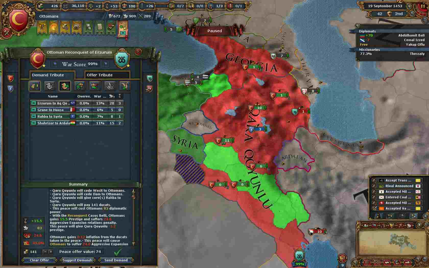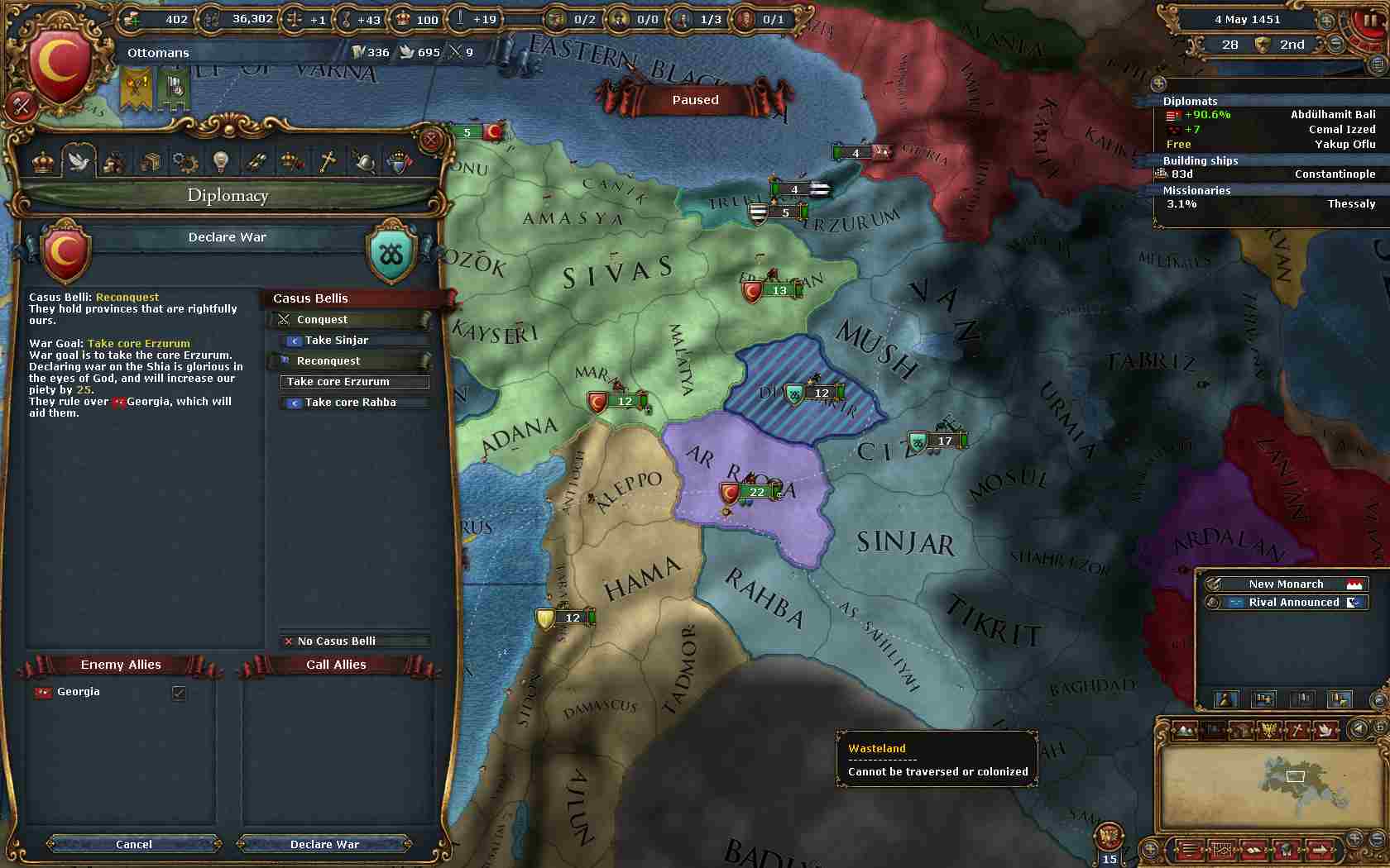 そして今度は属国Syria作成の為、Aq QoyunluにオスマンコアのCBで宣戦布告