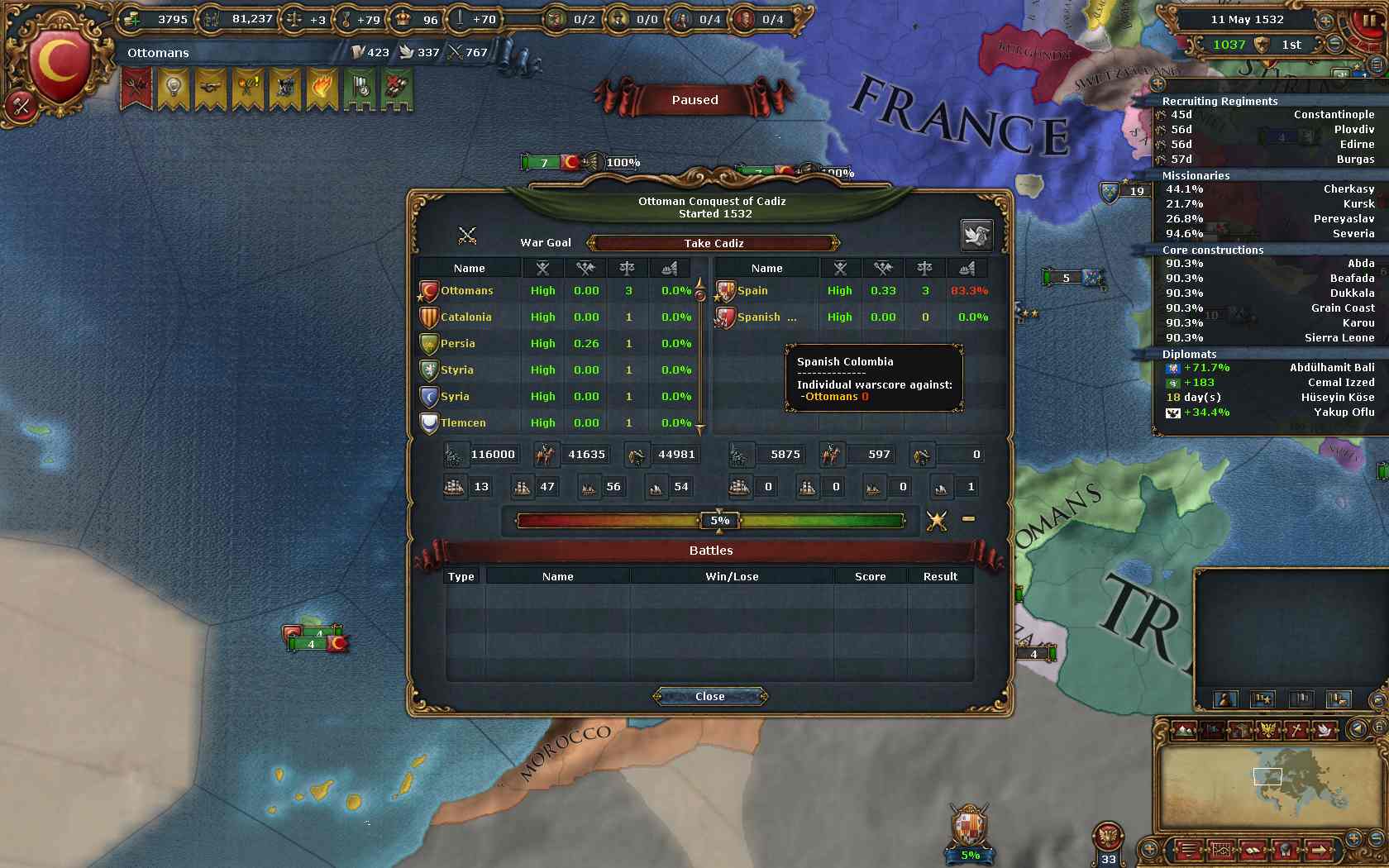 同盟国SpainがFranceに蹂躙されていたため、あっという間に終戦しました。