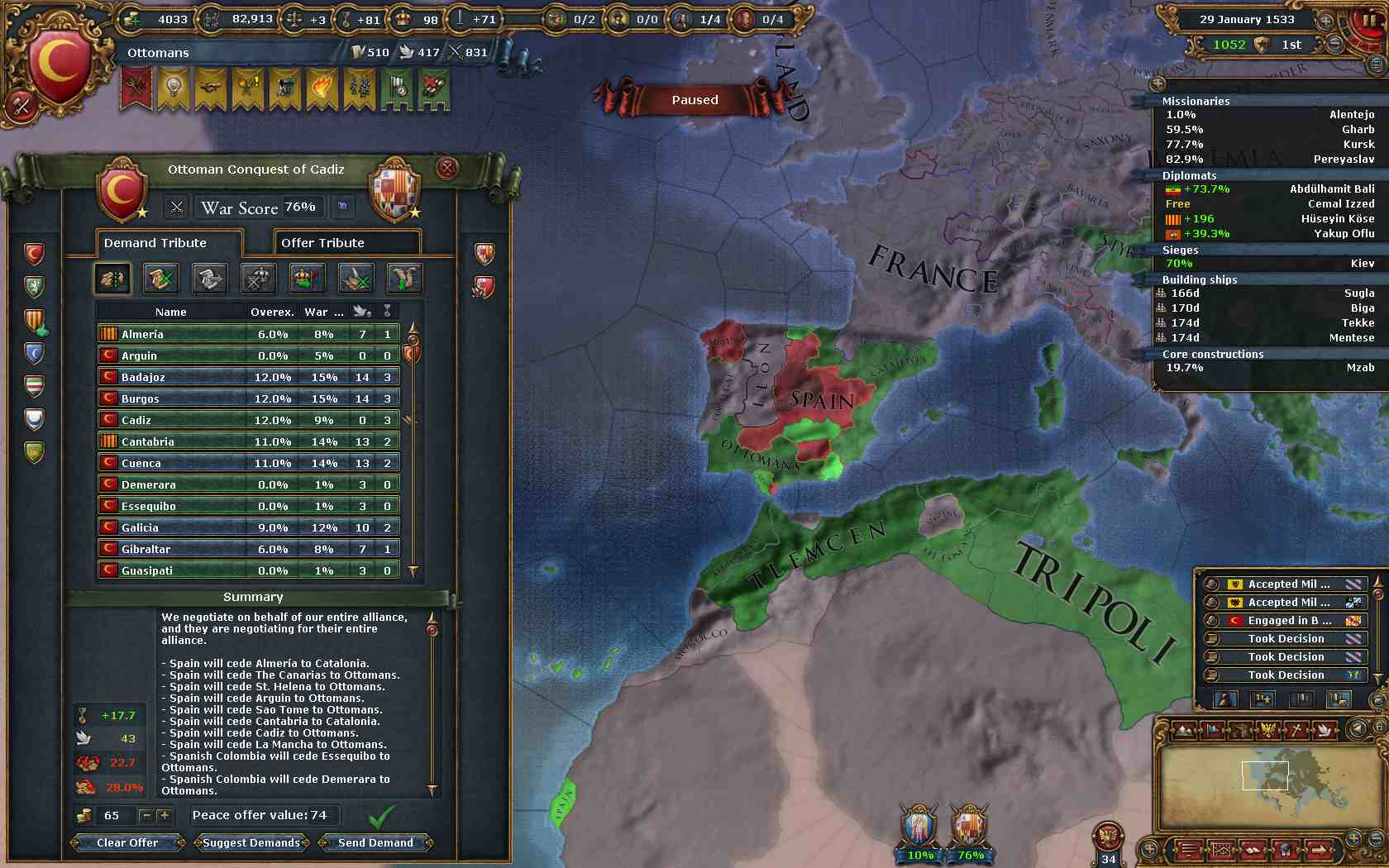 Astrakhanの外交併合が完了しdiplomaticアイデアも進めたので、