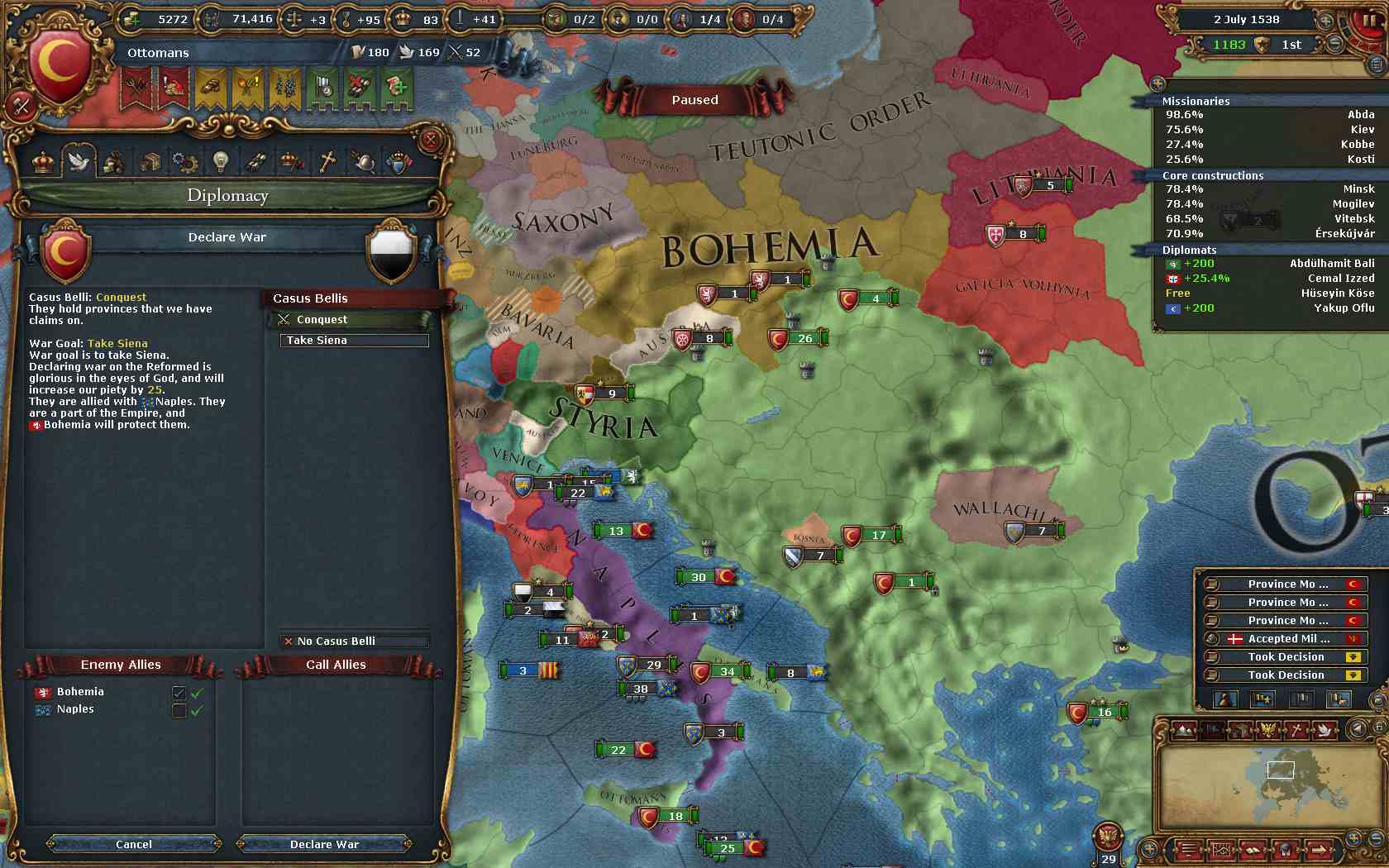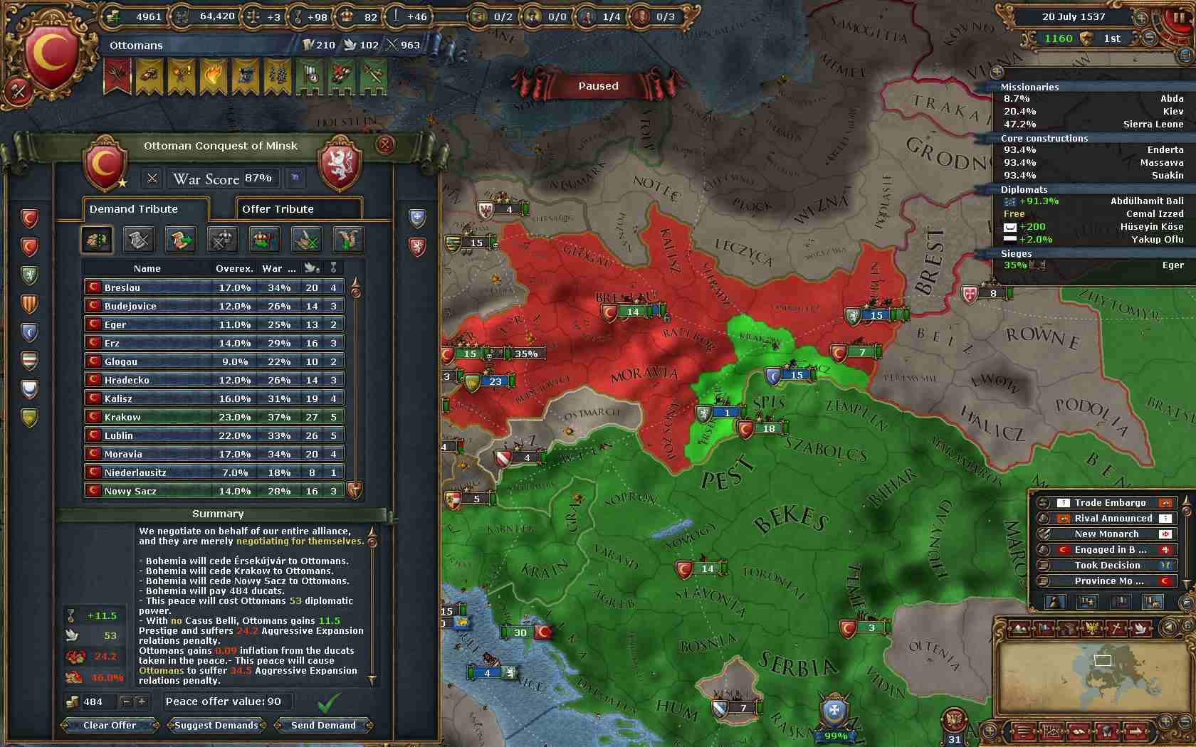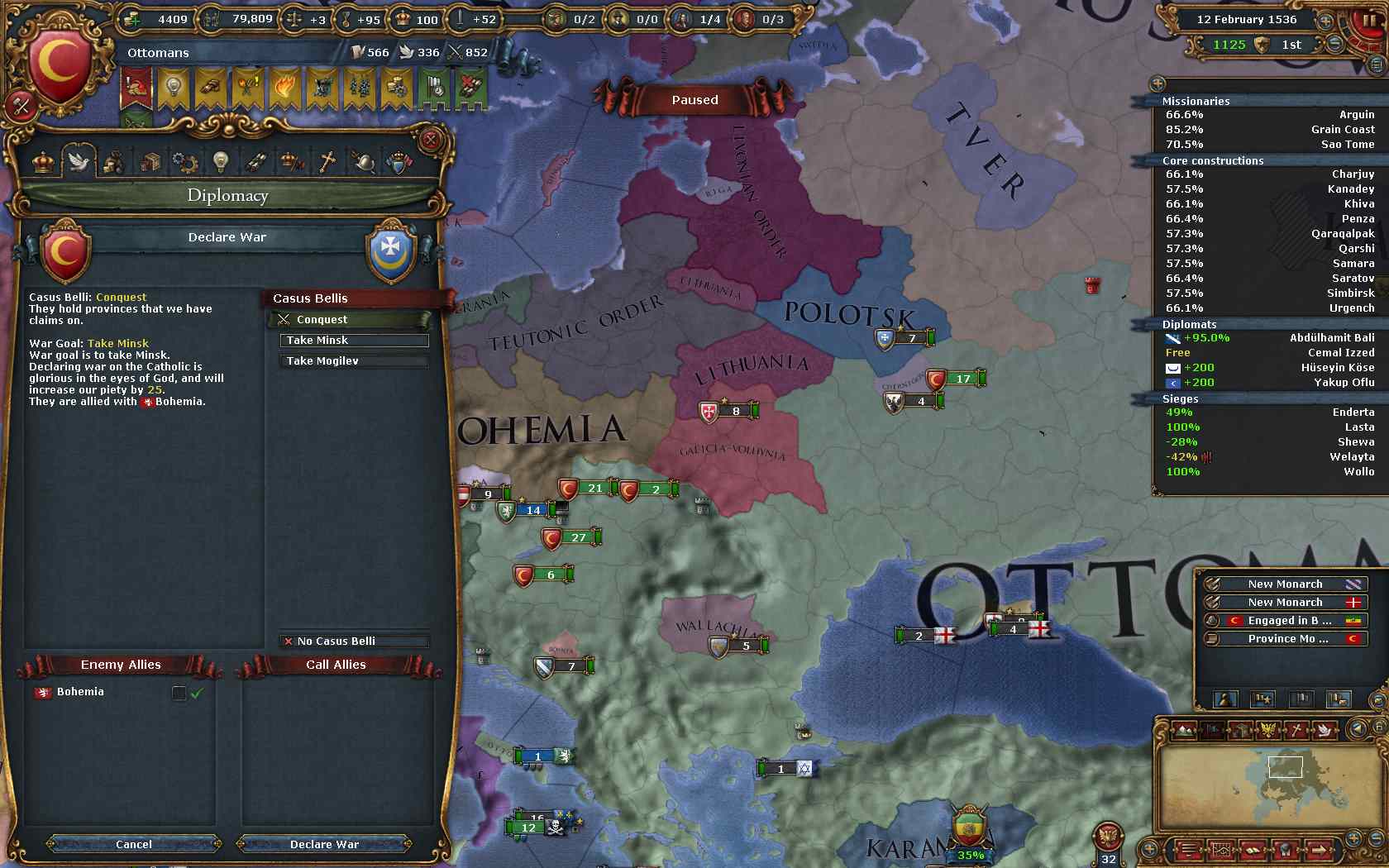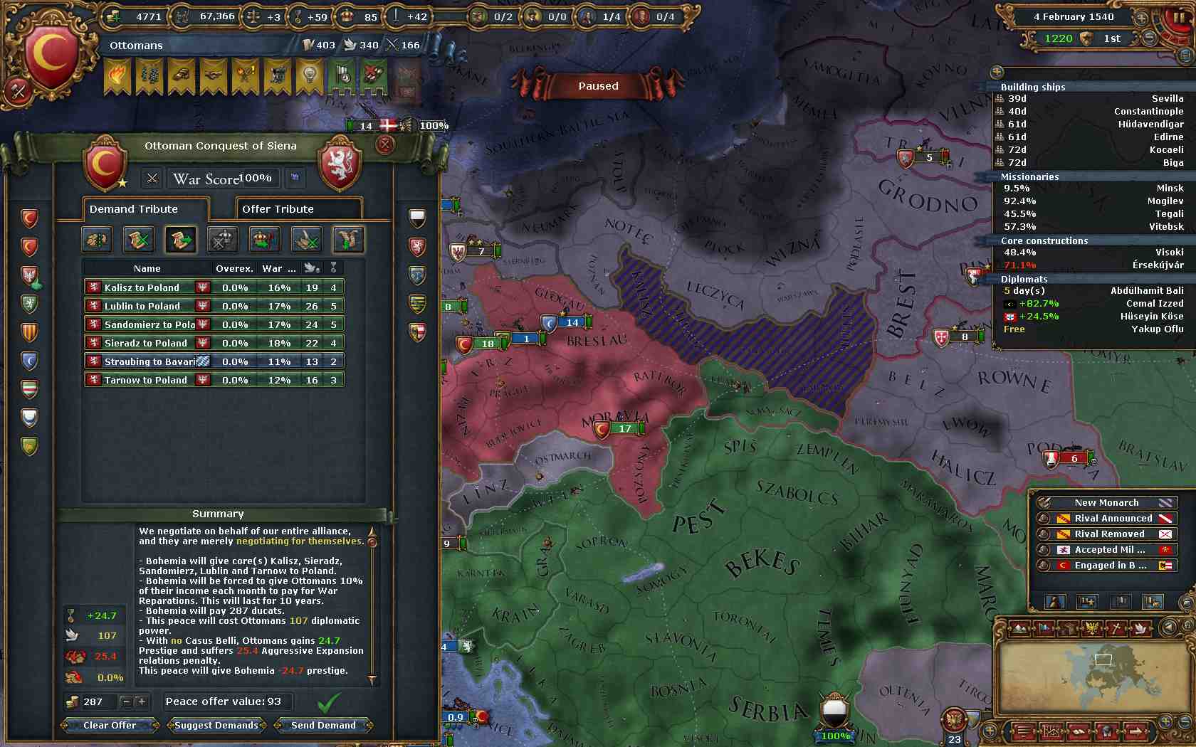 ということで、まずはPolandのコア州を多く抱えるBohemiaを攻めることにしました。