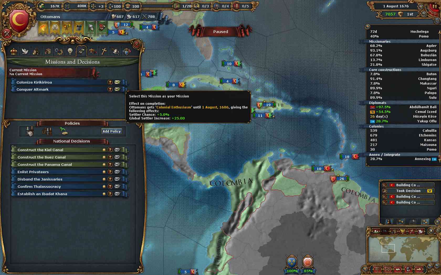 植民を早める為にColonial Enthusiasmが得られるミッションを選択
