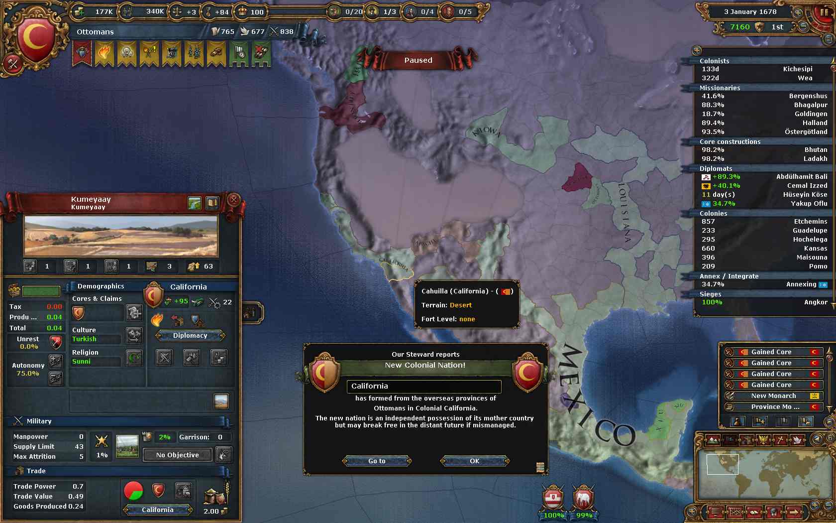 さらに新大陸の植民を手伝ってもらう為にヨーロッパに植民国家を作ることにし、
