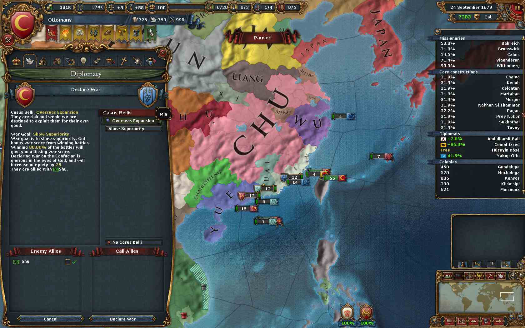 足場を作るべく沿岸沿いで同盟関係の弱い国を選択しました。