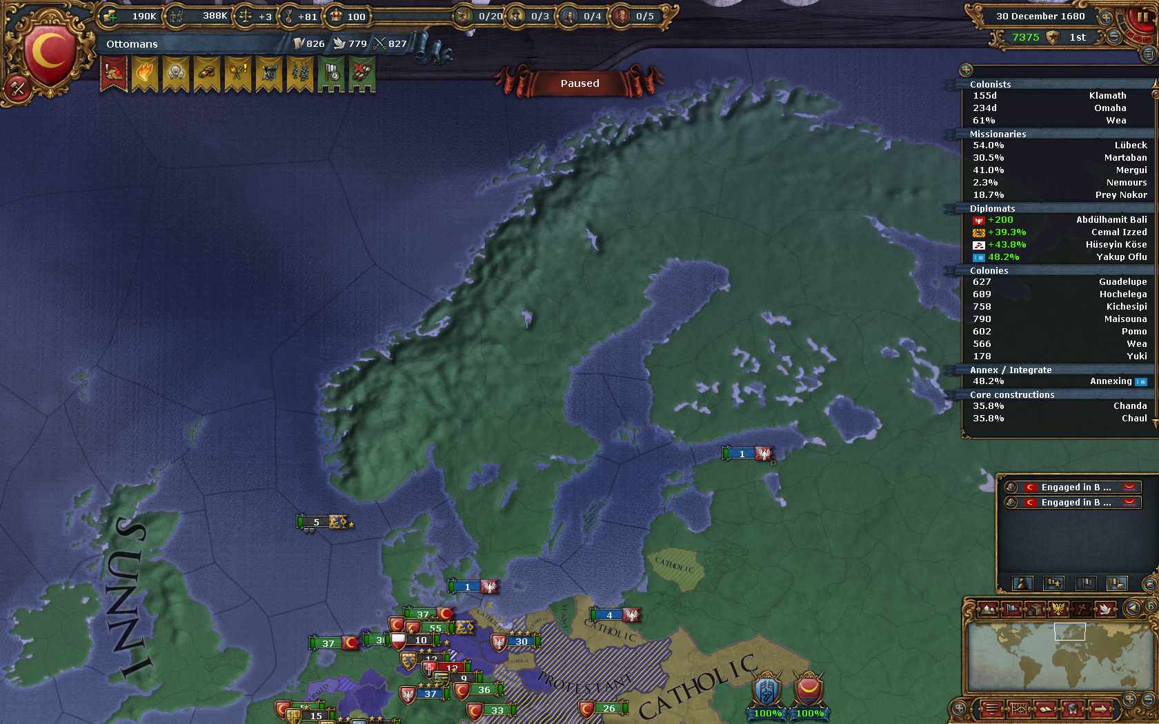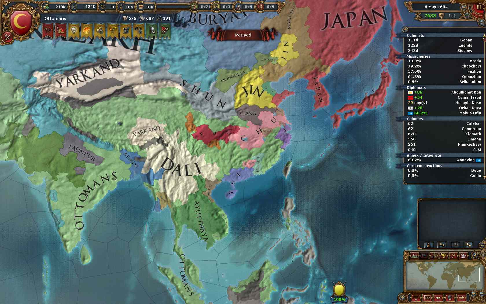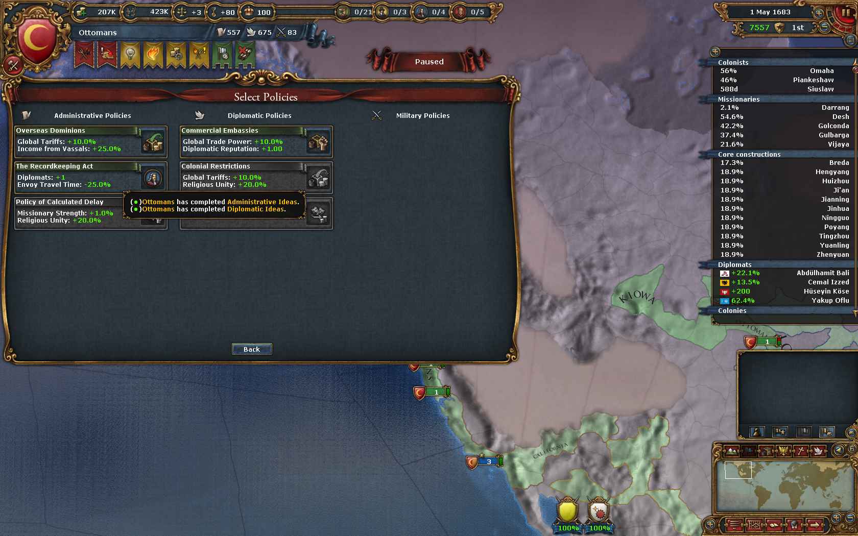 (オスマンアイデア33% + 統治アイデア25% + 統治効率40%)
