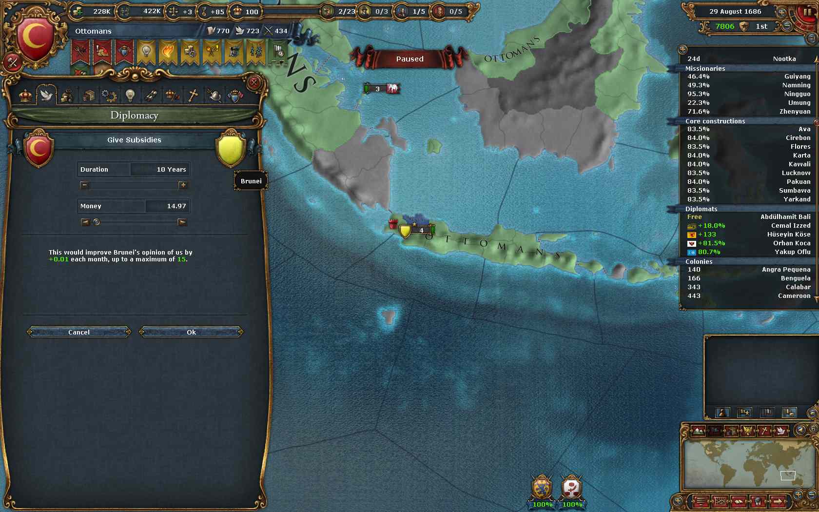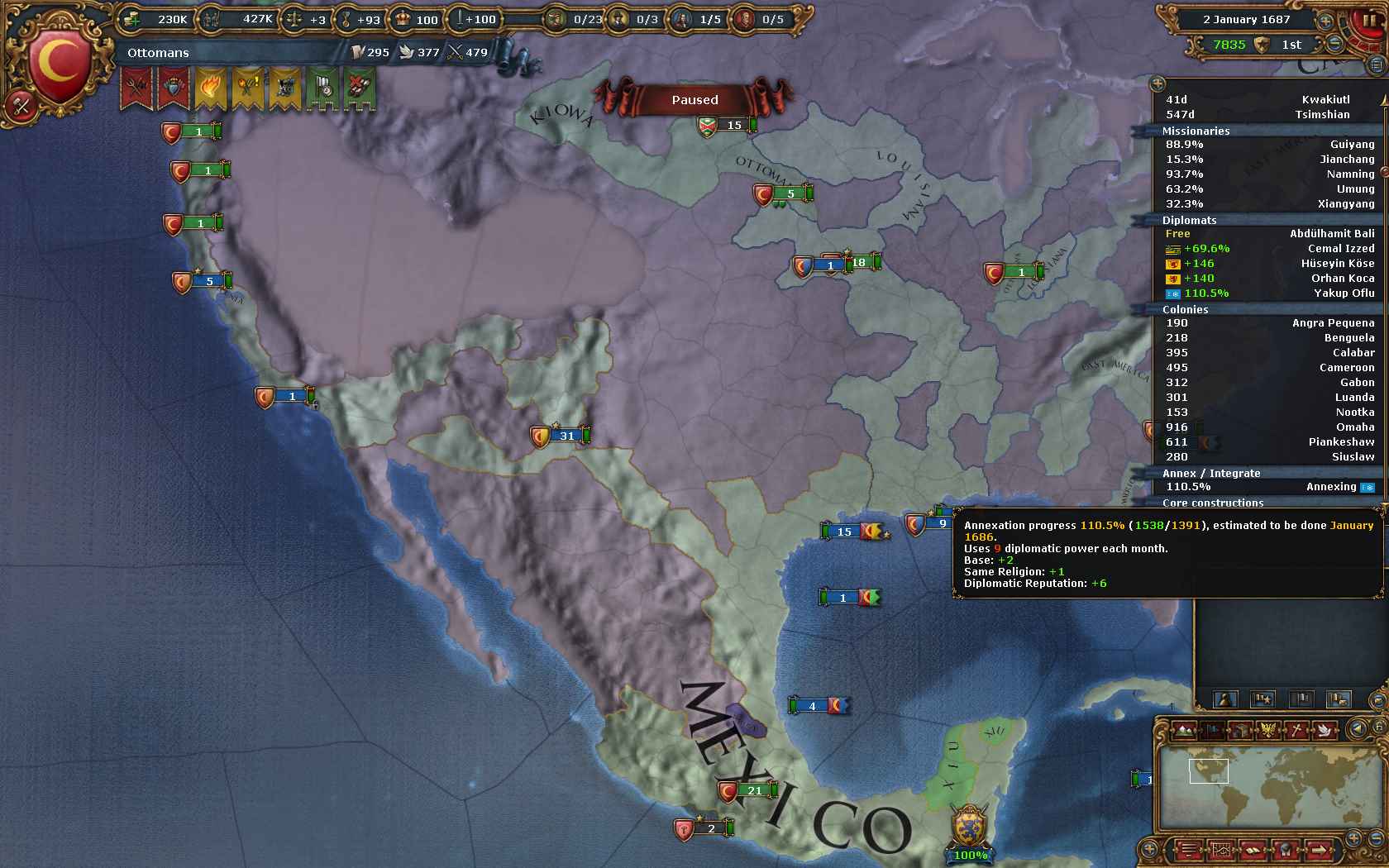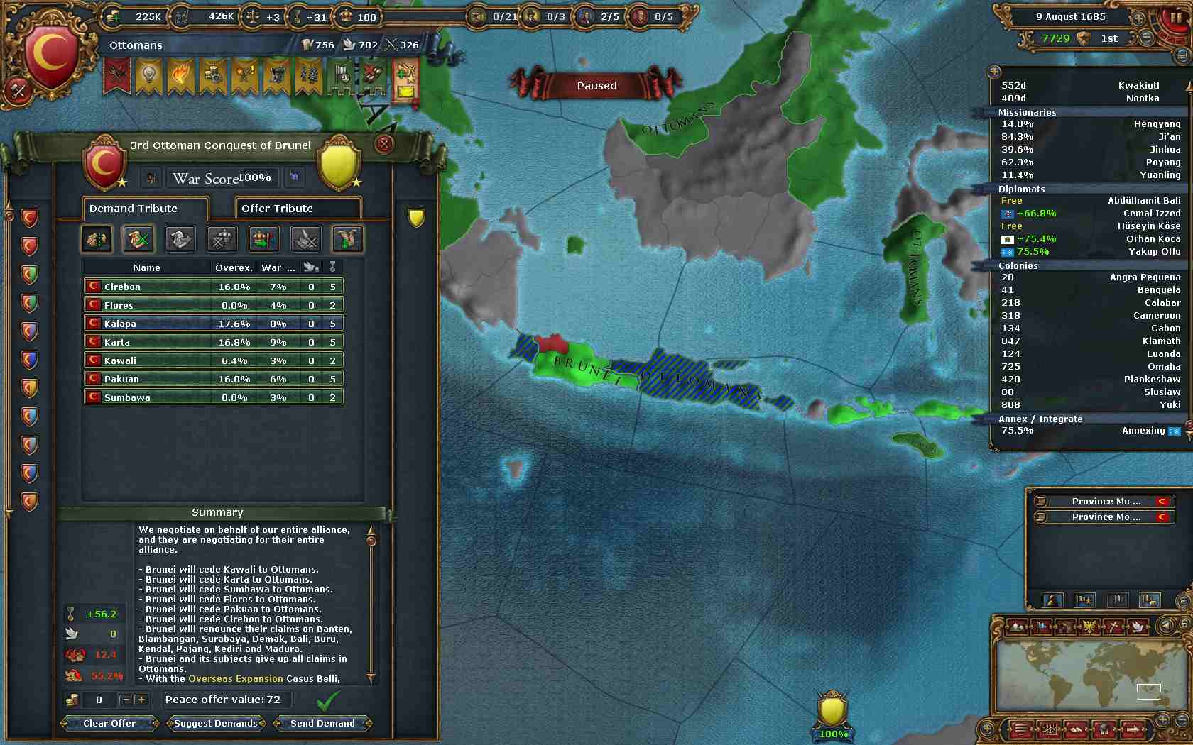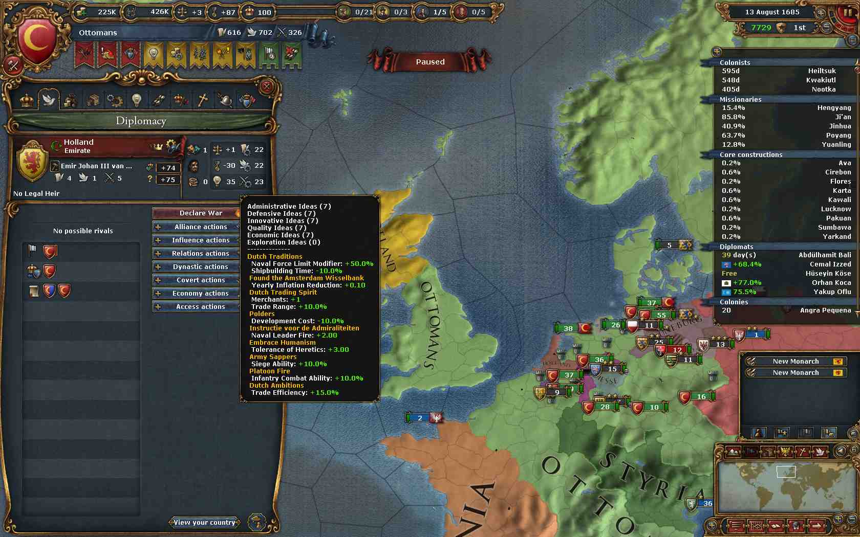 (オスマンアイデア33% + 統治アイデア25% + 統治効率40%)