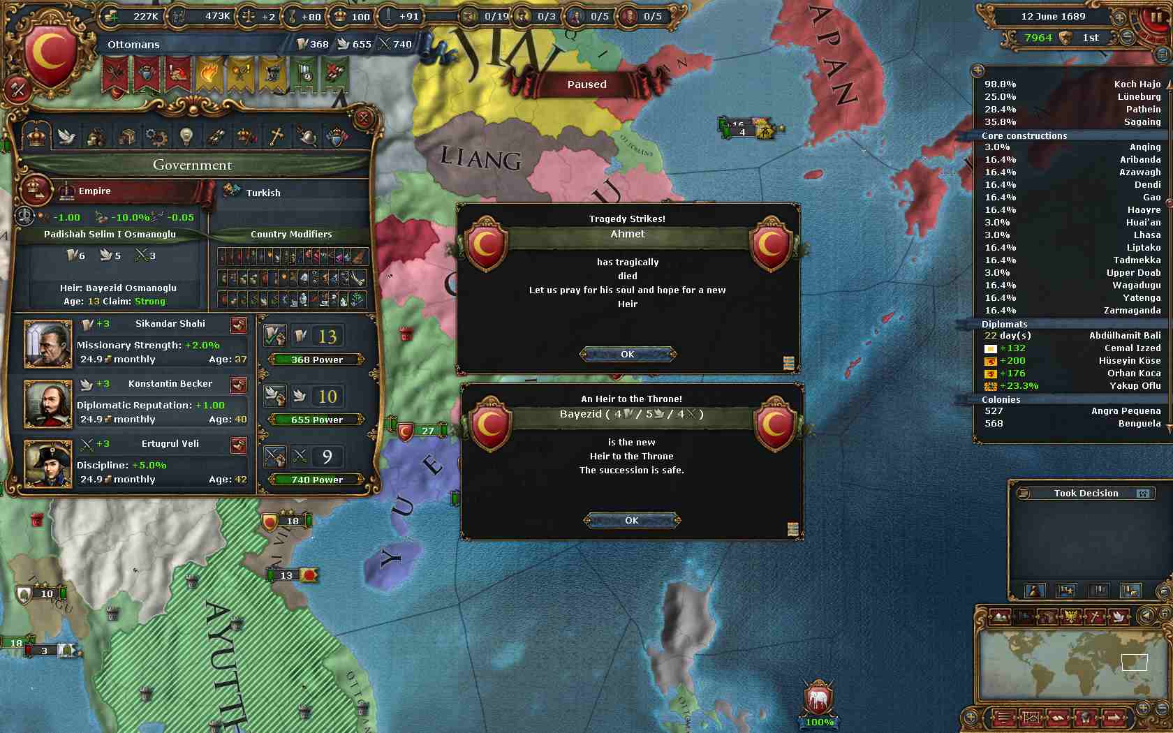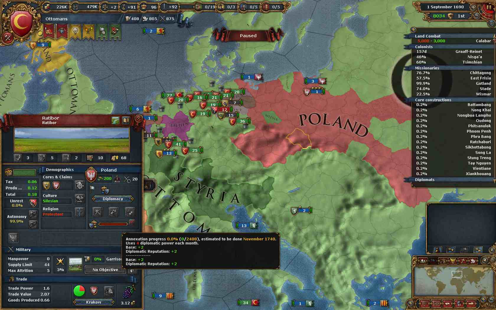 オスマンアイデア33% + 統治アイデア25% = 58%引き