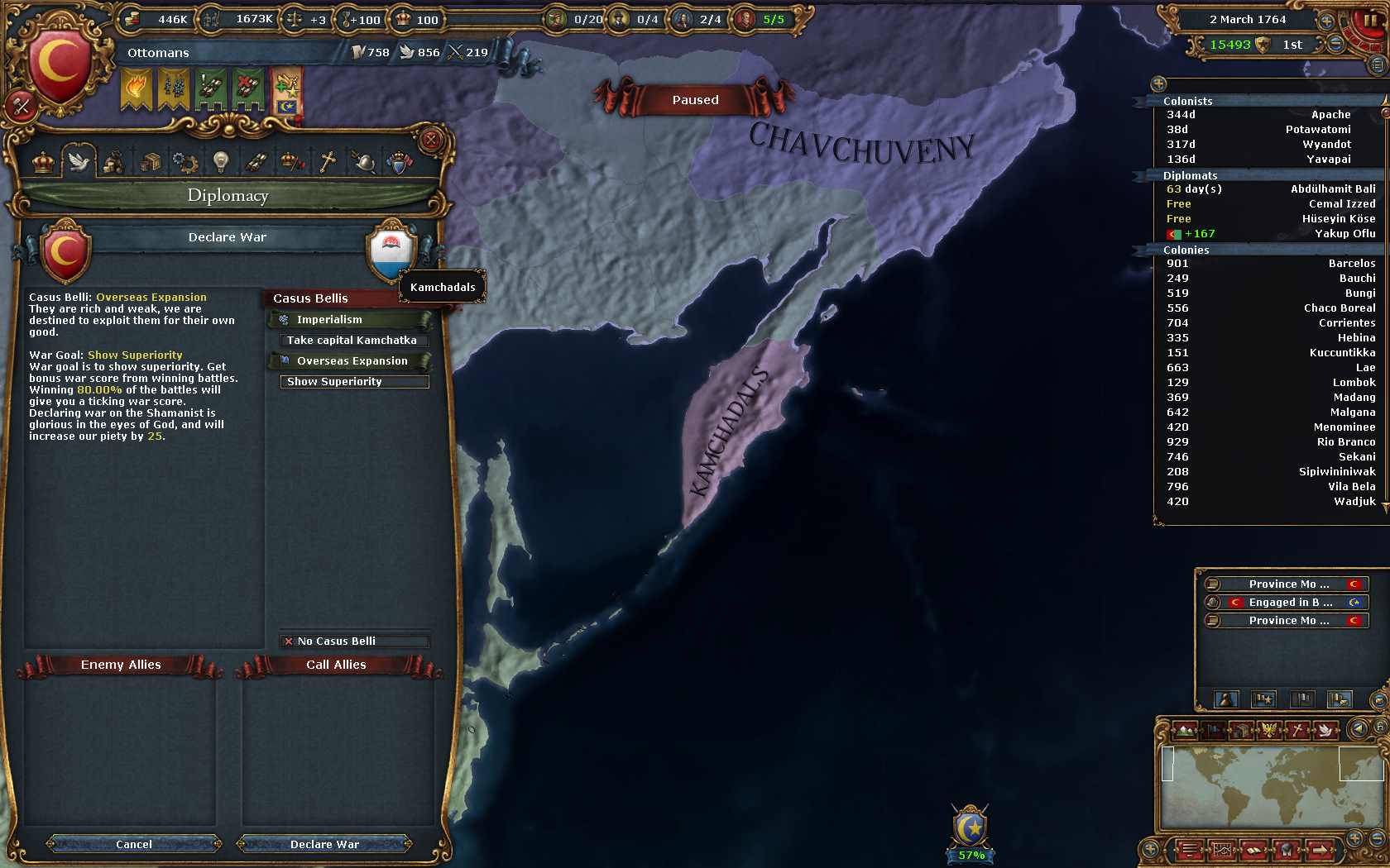 Malacca、Brunei戦のPiety調整用に残していた2国にも順番に侵攻しました。