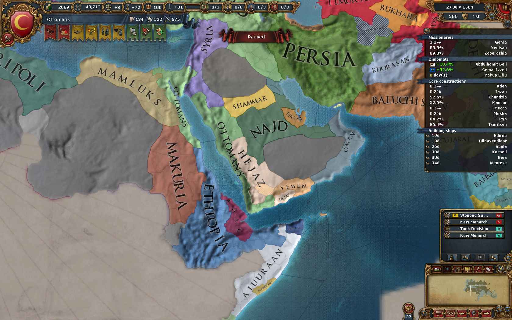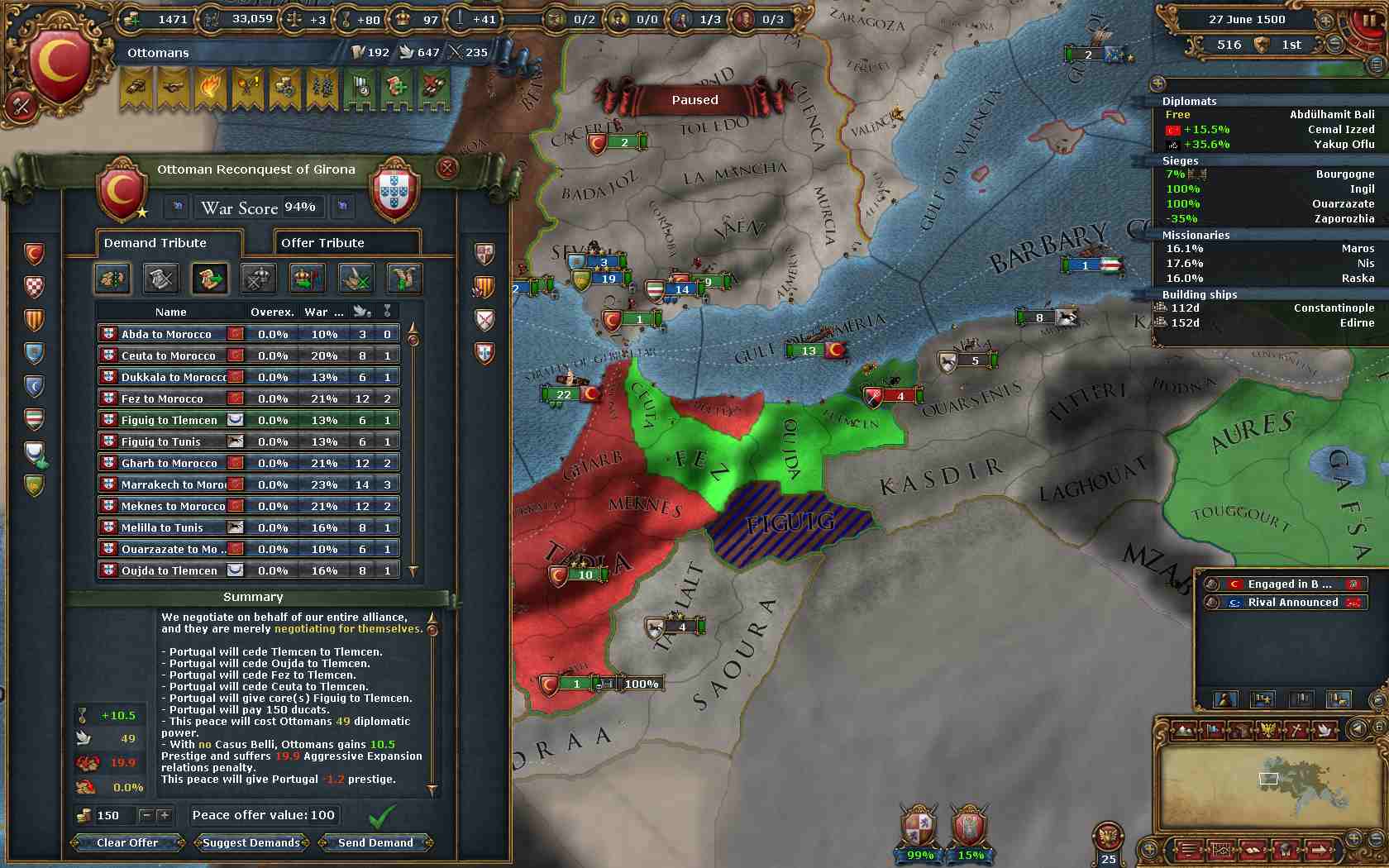 先にPortugalと個別和平。Tlemcenのコア州を回収。