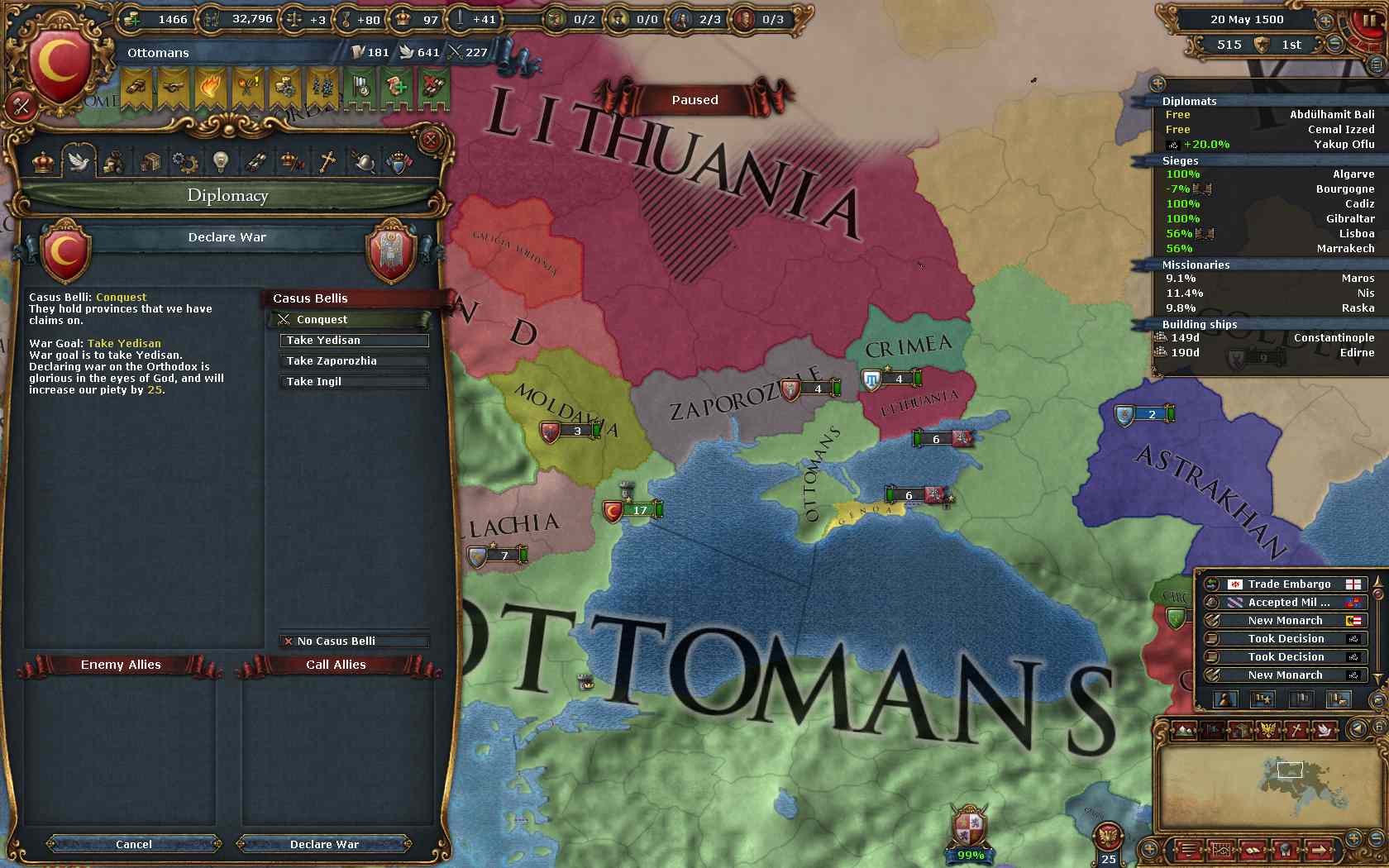そのような情勢の中、Lithuaniaより独立を果たしたZaporozhieに侵攻しこれを併合。(時期はSpain戦の後半頃)