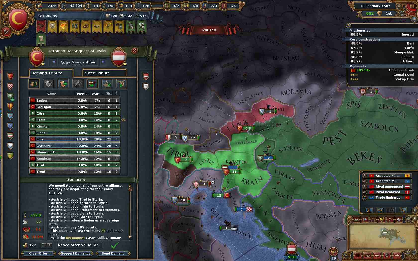 属国Styriaのコアがある州をガッツリ割譲。