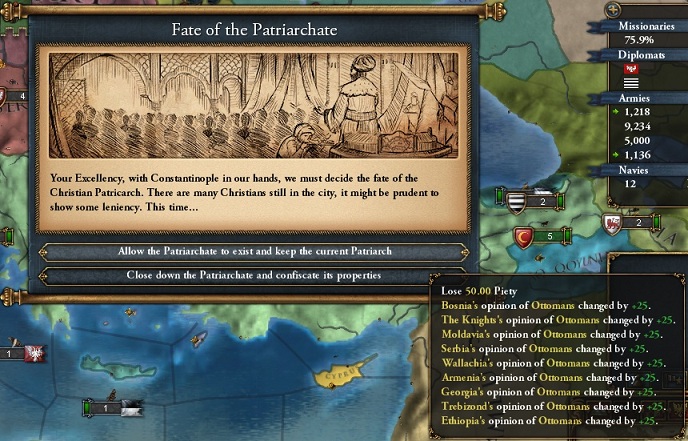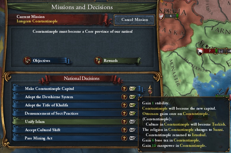 ビザンチン帝国は滅ぼした。次はその周辺領域を征服し、帝国の後継者であるオスマンの正当な土地を回収するべきであろう。