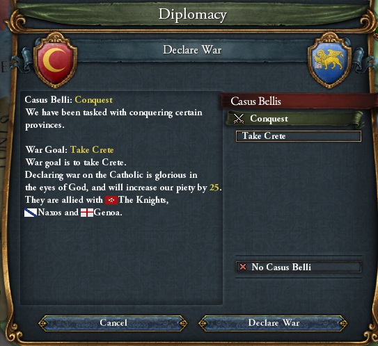 交渉は決裂し、戦争が始まったがもはやベネチアに力は無く、クレタ島、ナクソス、ロードス全てオスマン帝国の手中に収まった。