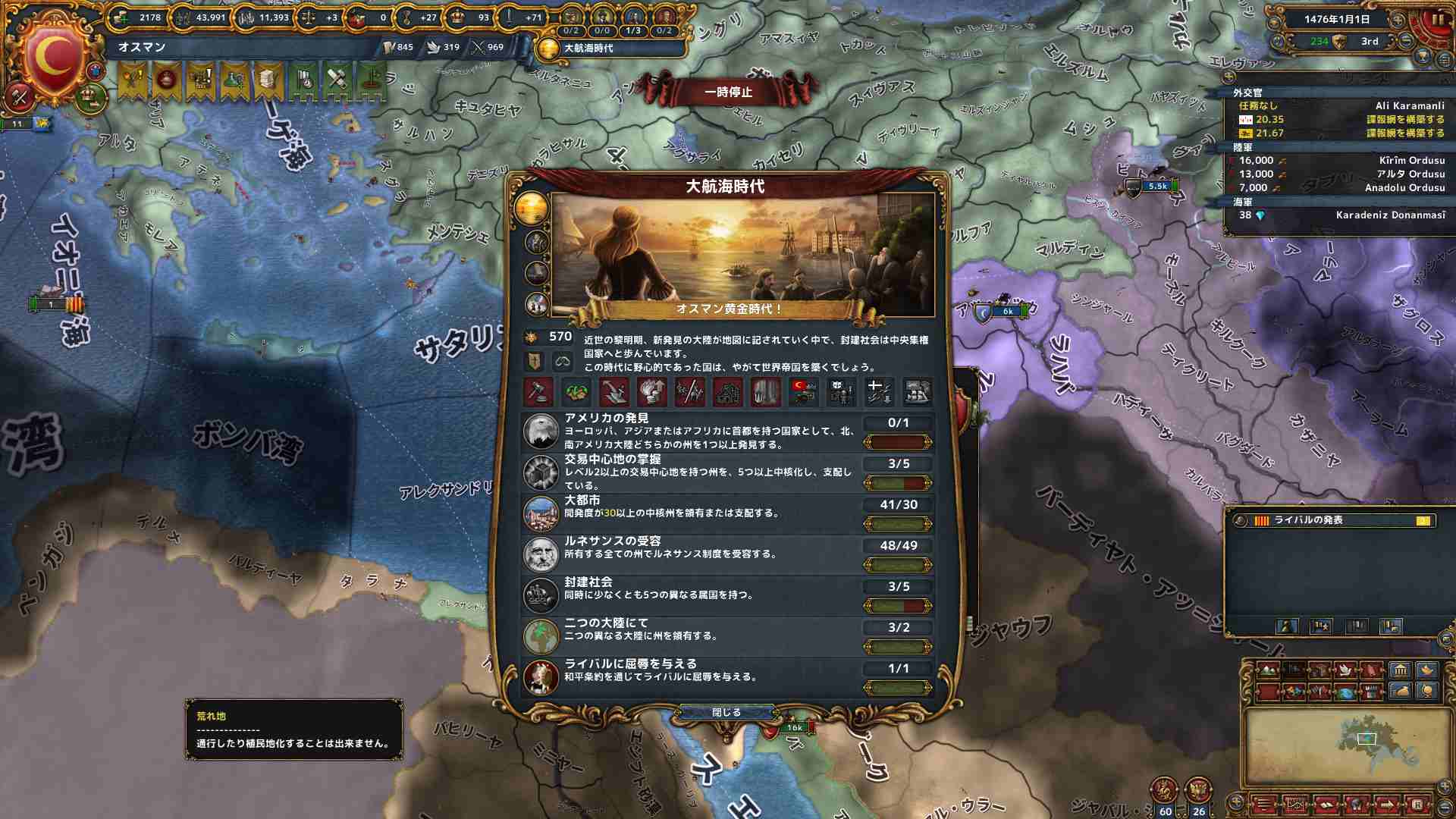 統治キャパかつかつの予定なので、カゼルタ宮殿確保はおいしいです。
